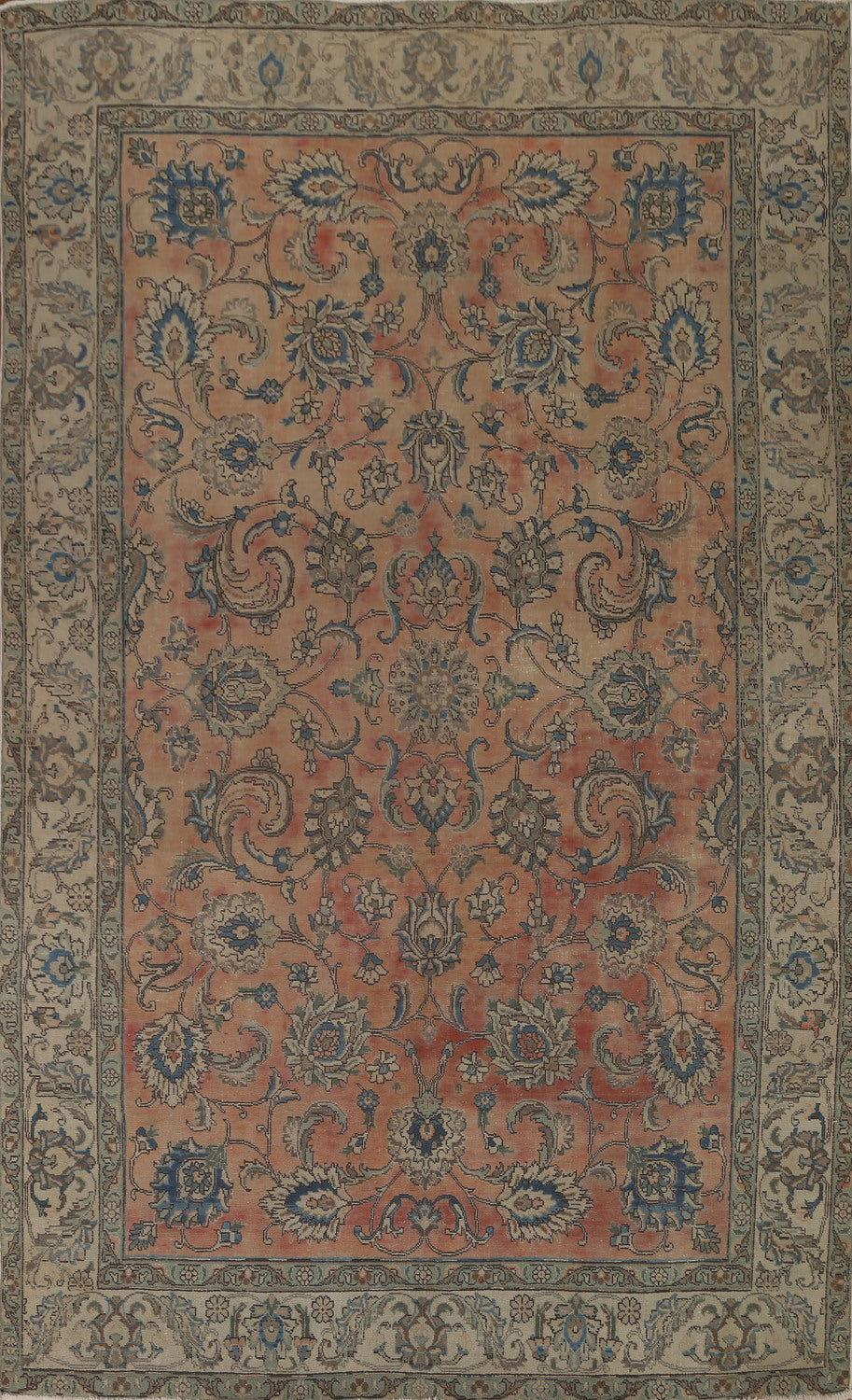Distressed Floral Tabriz Persian Area Rug 6x9