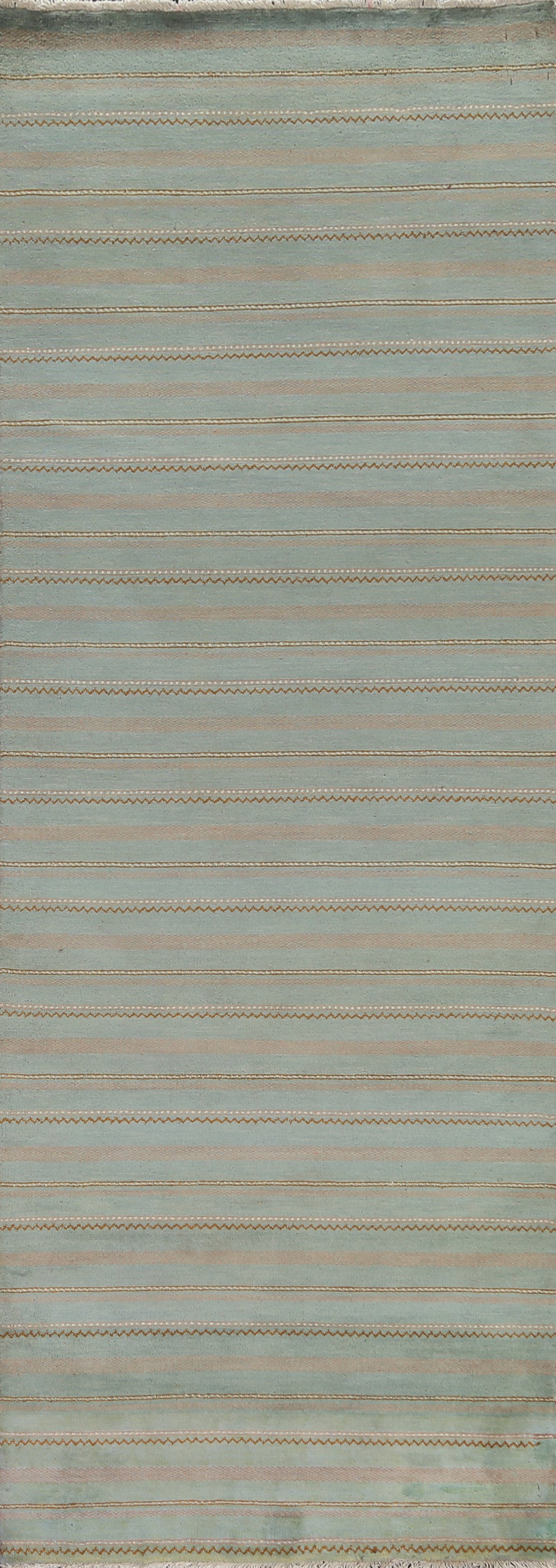 Green Striped Gabbeh Kashkoli Oriental Runner Rug 3x18