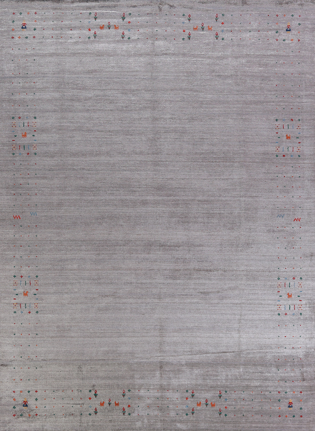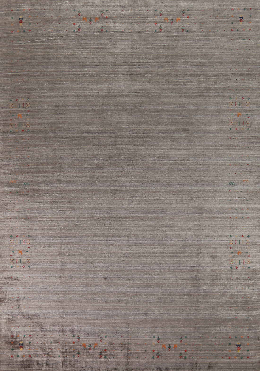 Silver Gray Wool Gabbeh Indian Area Rug 9x12