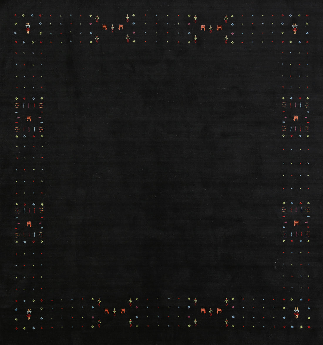 Charcoal Wool Square Tribal Gabbeh Indian Area Rug 8x8