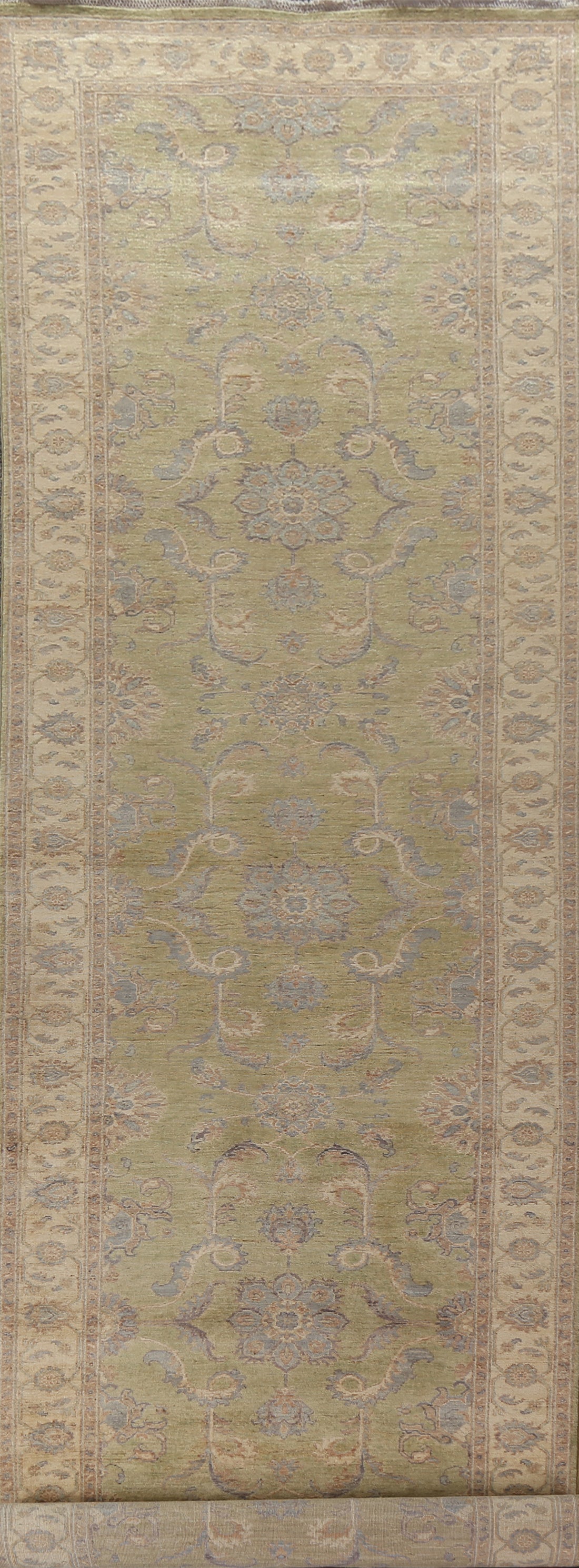 Vegetable Dye Green Ziegler Wool Runner Rug 4x21