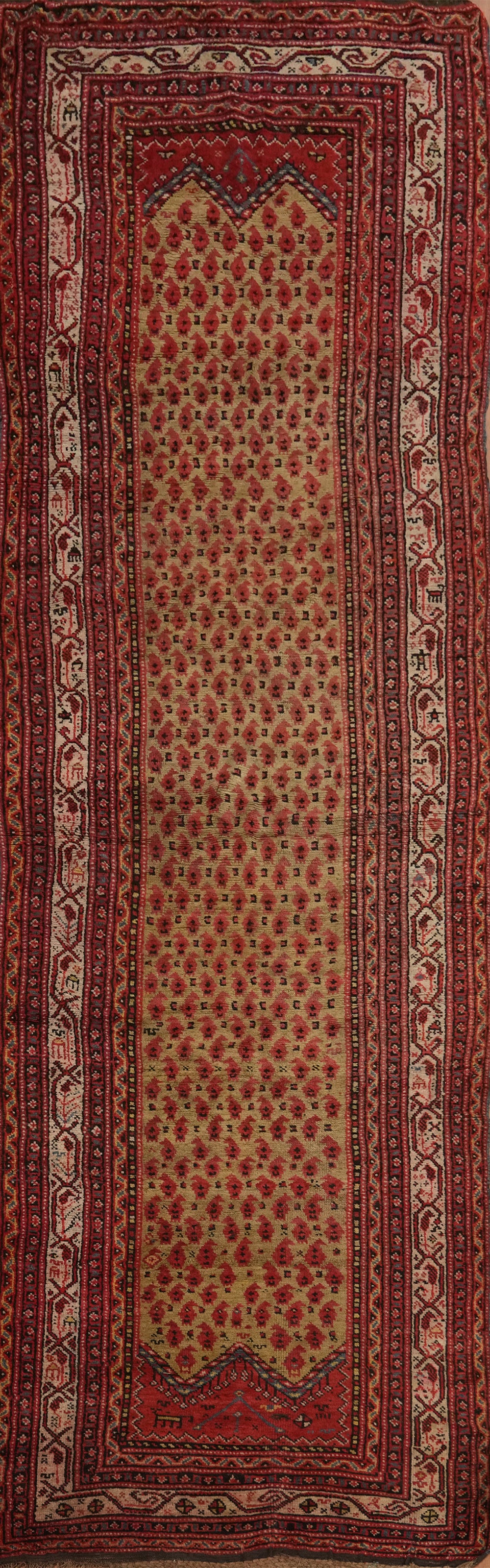 Antique Vegetable Dye Kurdish Persian Runner Rug 4x14