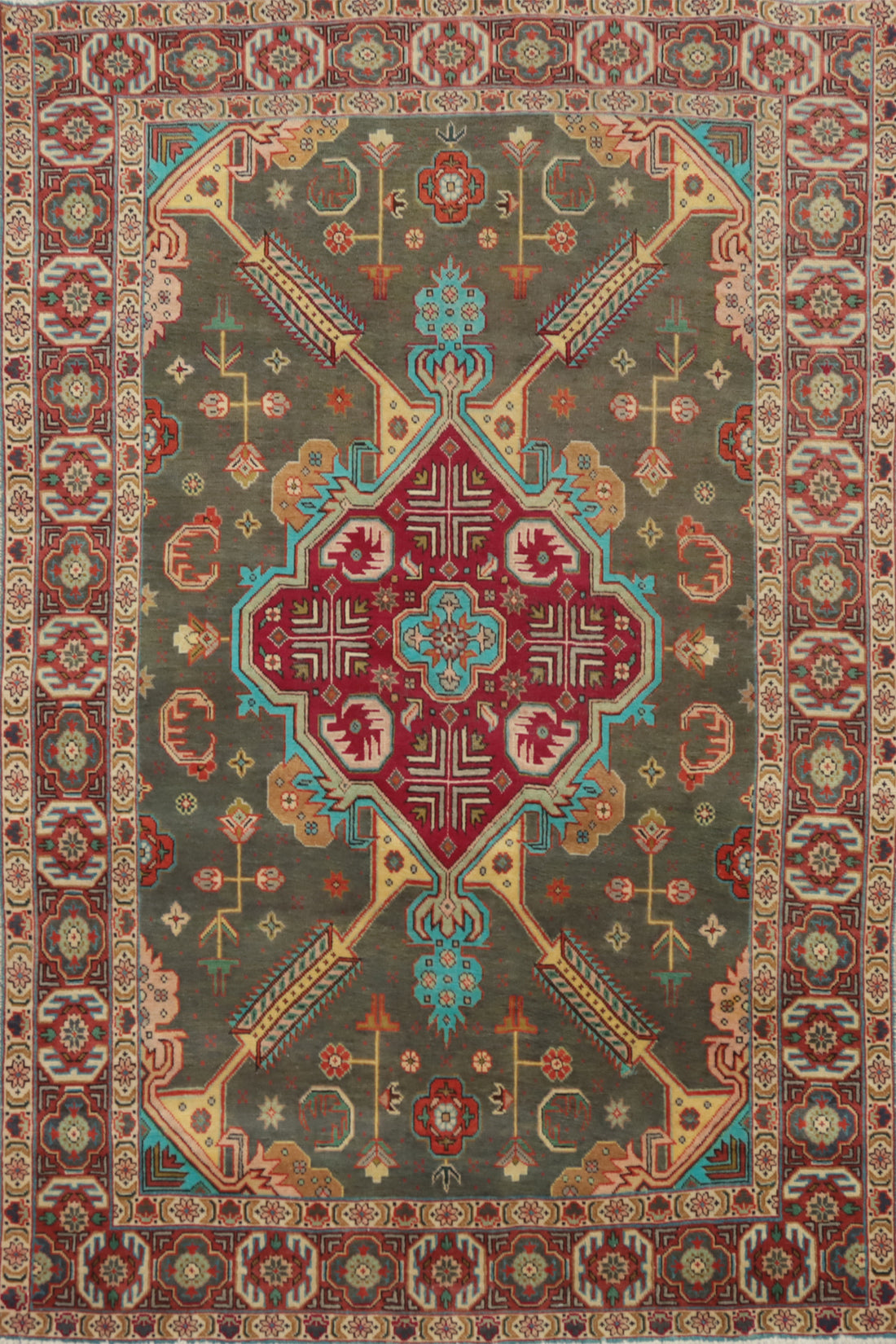 Green Wool Handmade Tabriz Persian Area Rug 6x9
