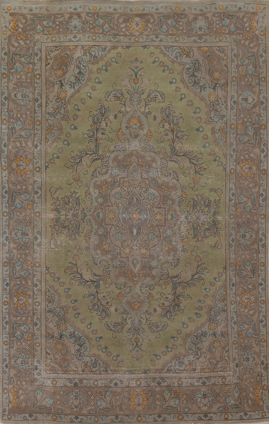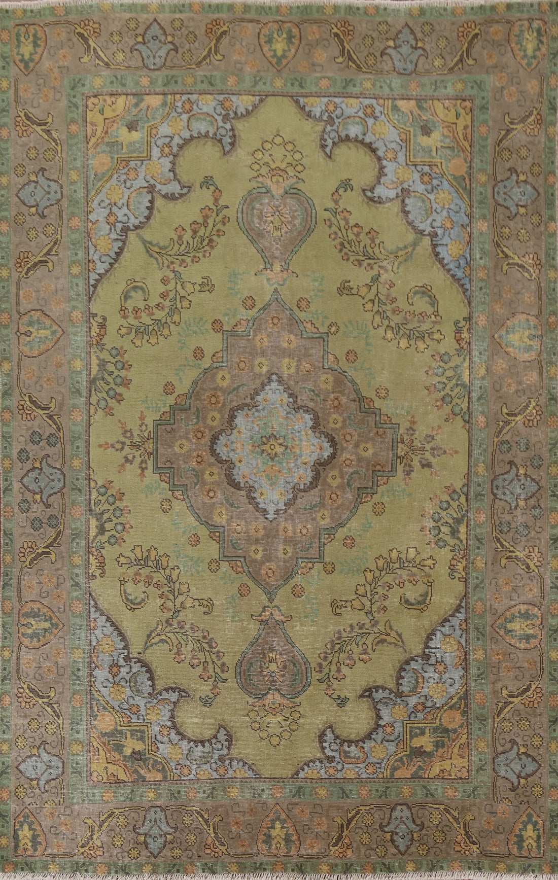Over-Dyed Green Tabriz Persian Area Rug 6x9
