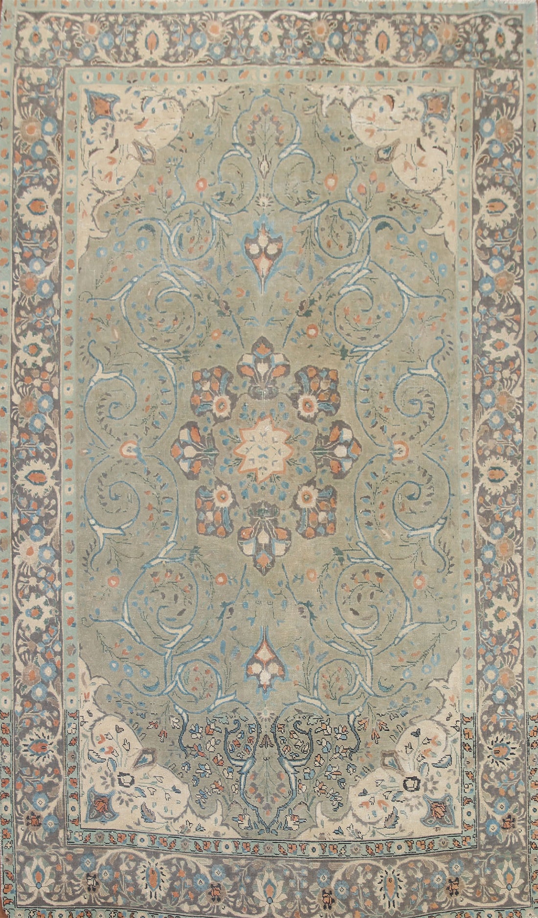 Light Green Medallion Tabriz Persian Area Rug 7x10