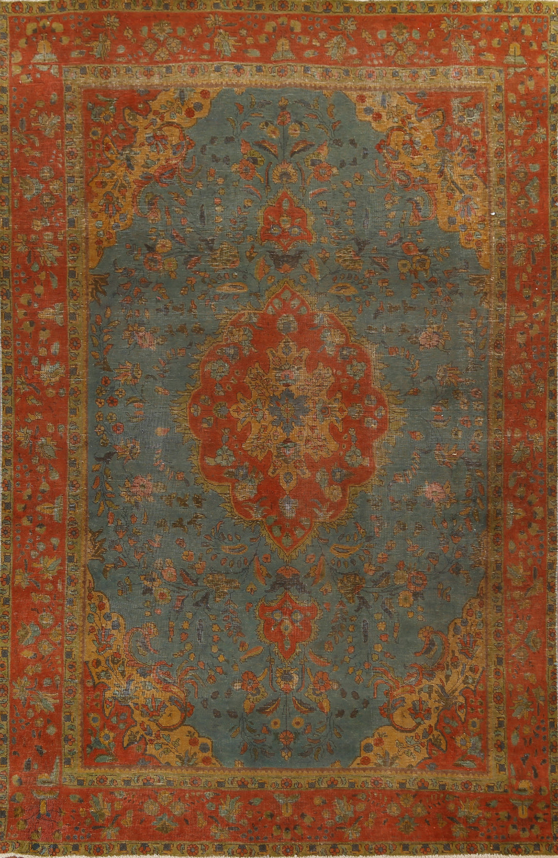 Distressed Over-Dyed Tabriz Living Room Rug 6x10