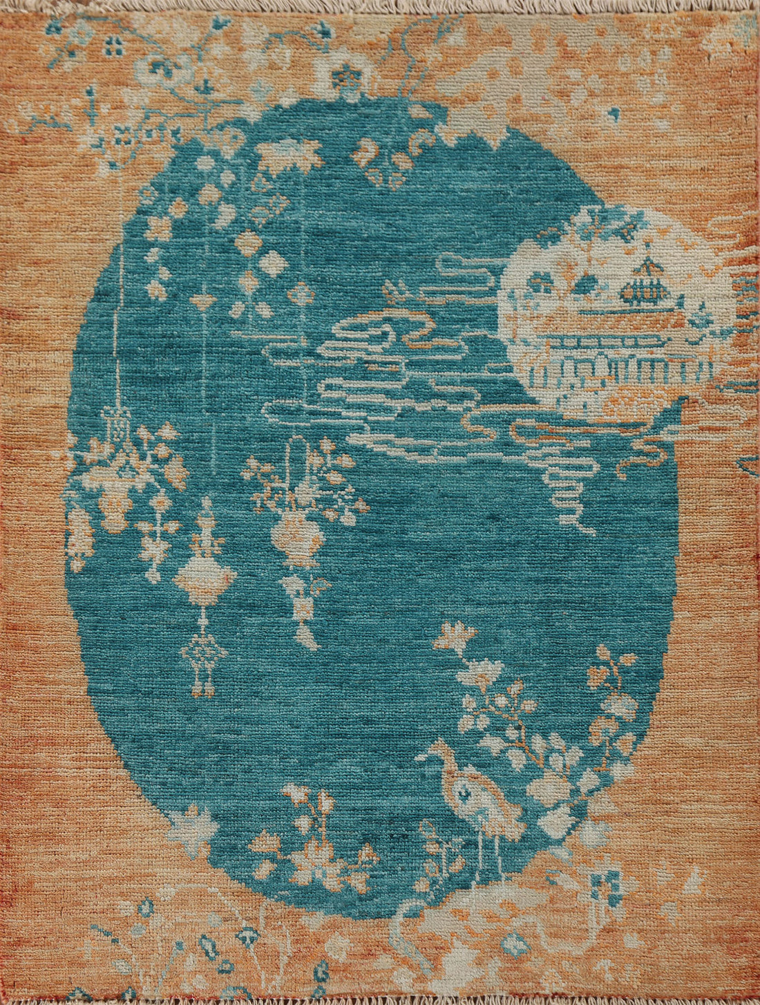 Animal Pictorial Oushak Vegetable Dye Accent Rug 3x4