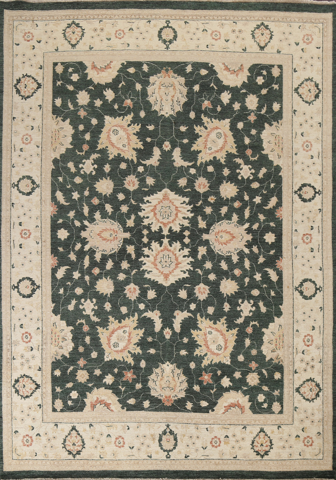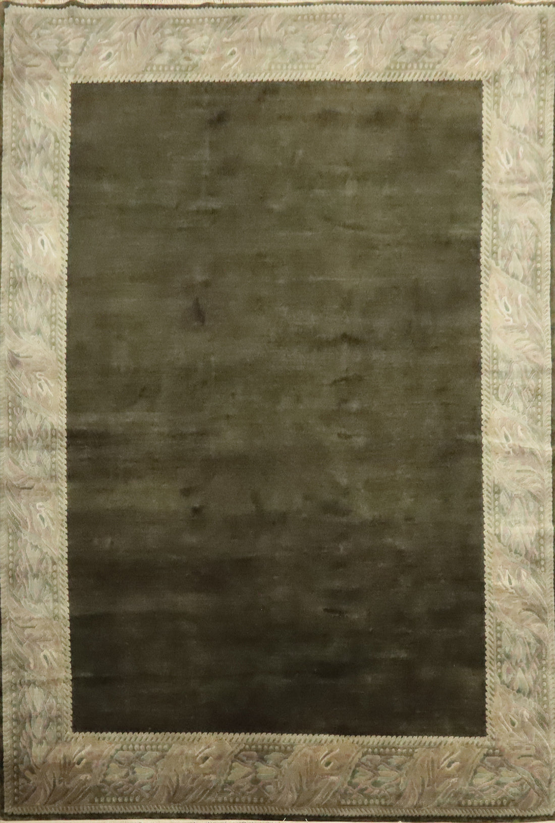 Vegetable Dye Dark Green Aubusson Oriental Rug 6x9