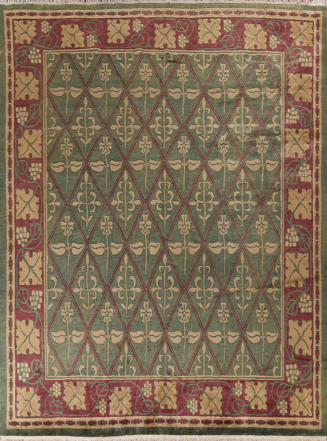 Vegetable Dye Green Art Deco Wool Area Rug 10x14