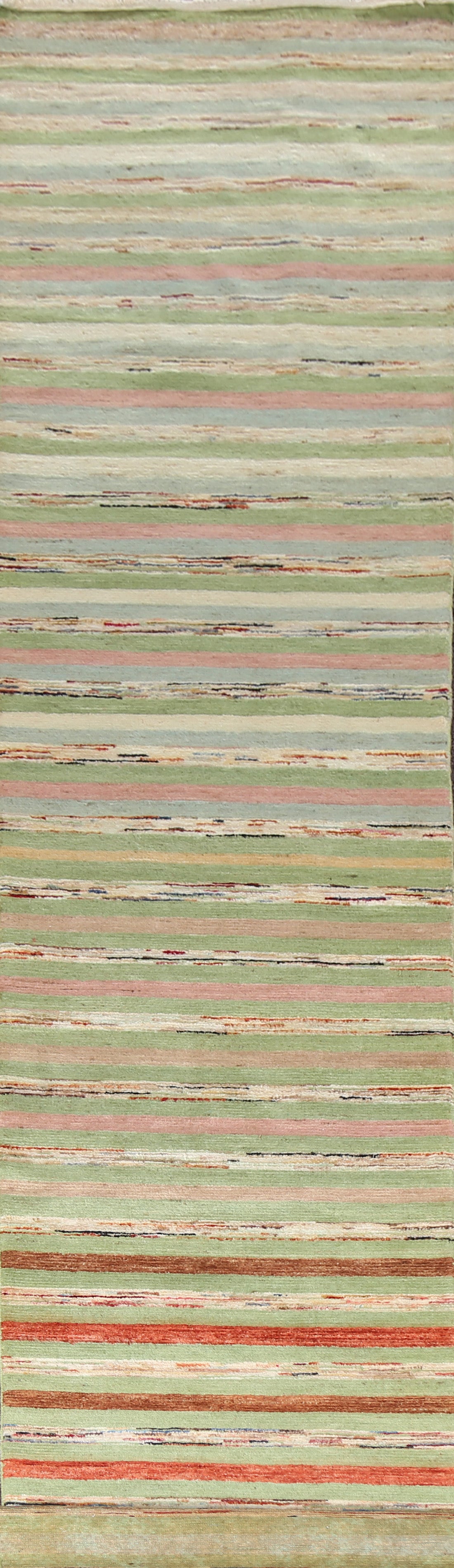 Green Striped Gabbeh Kashkoli Oriental Runner Rug 3x18