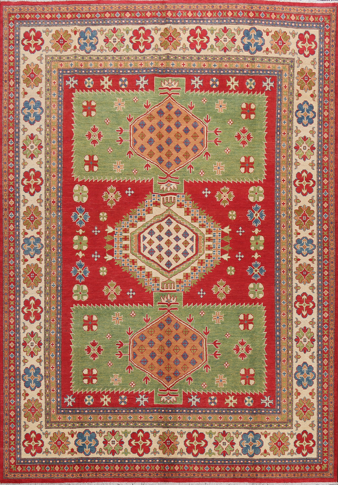 Vegetable Dye Geometric Red/Green Kazak Area Rug 8x10