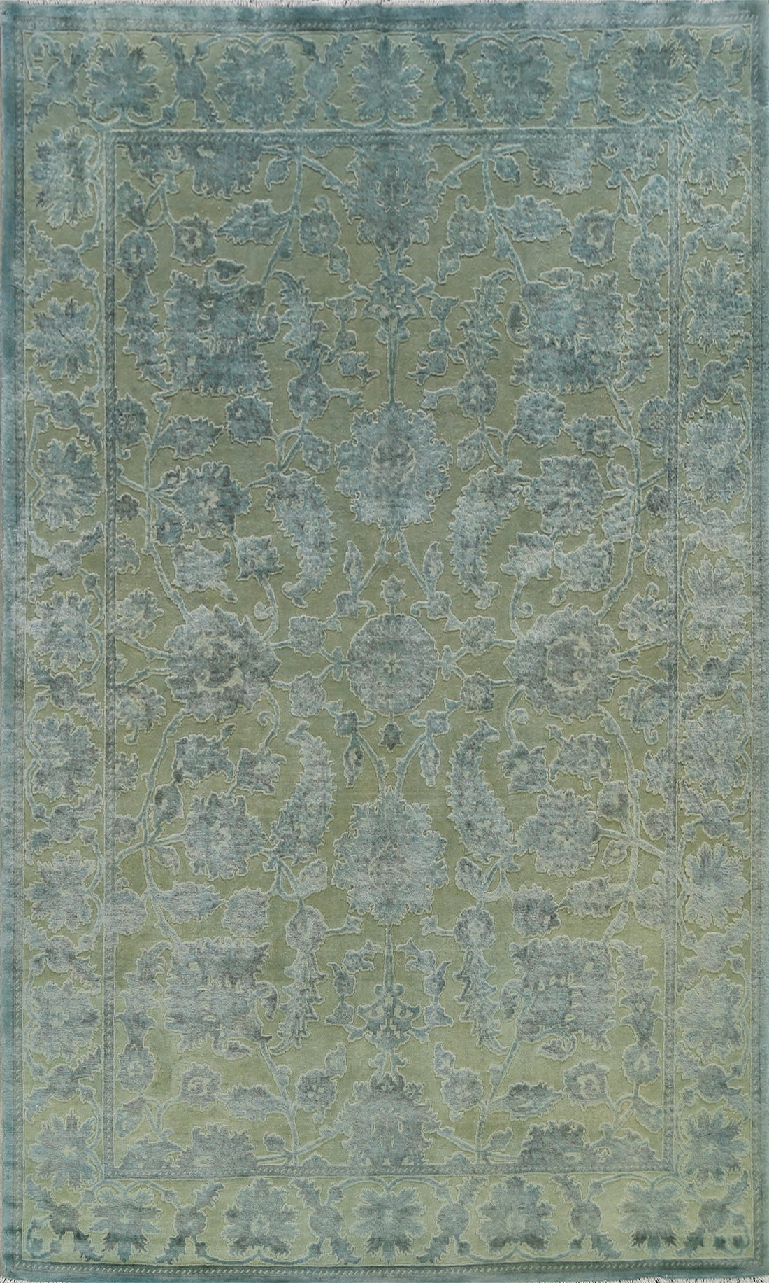 Vegetable Dye Carved Green Oushak Chobi Oriental Area Rug 6x10