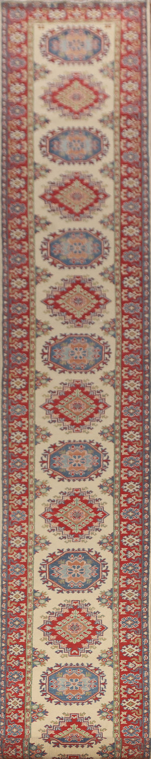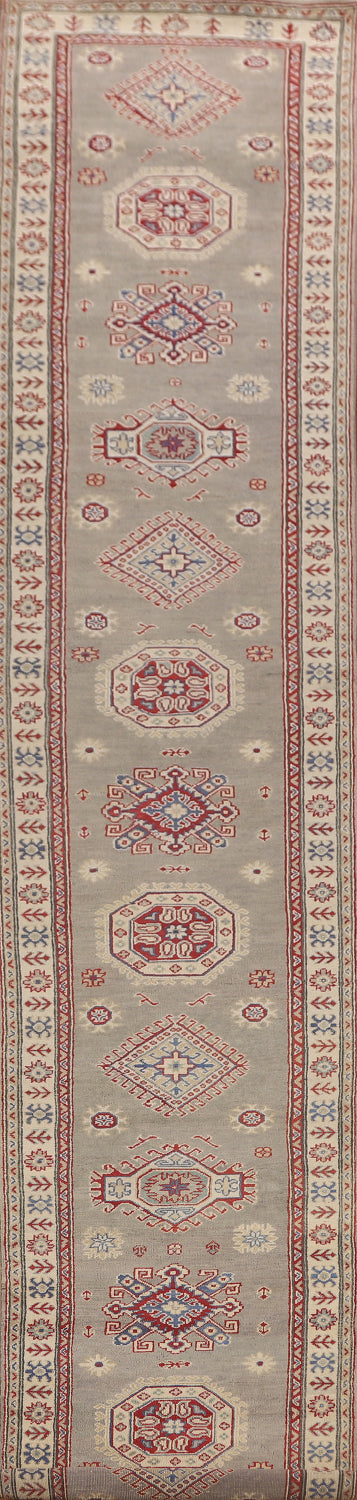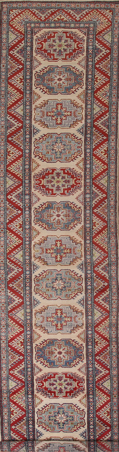 Handmade Wool Kazak Oriental Runner Rug 3x26