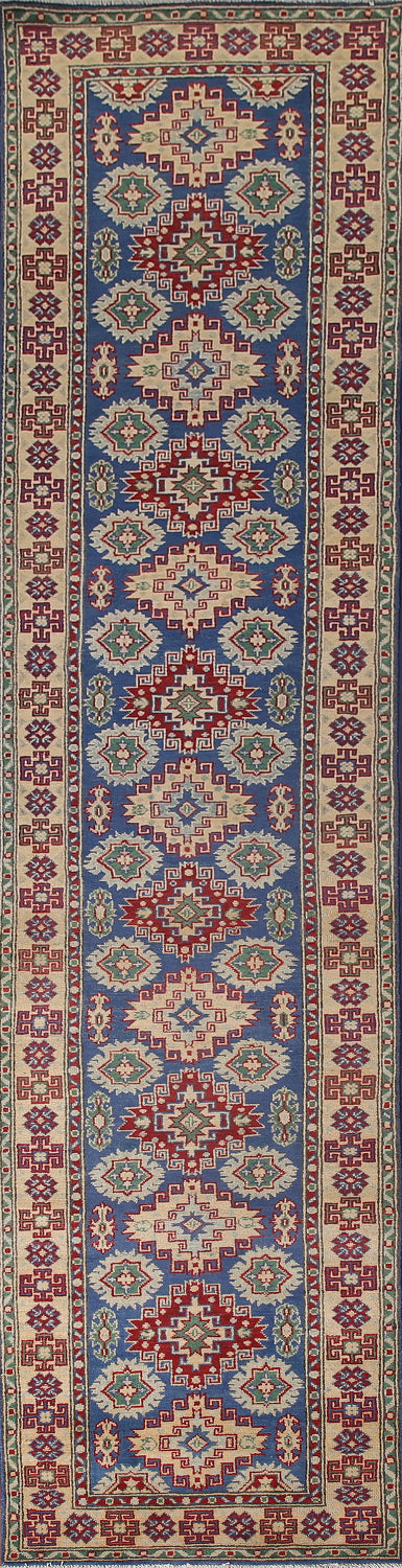 Handmade Blue Kazak Oriental Runner Rug 3x13