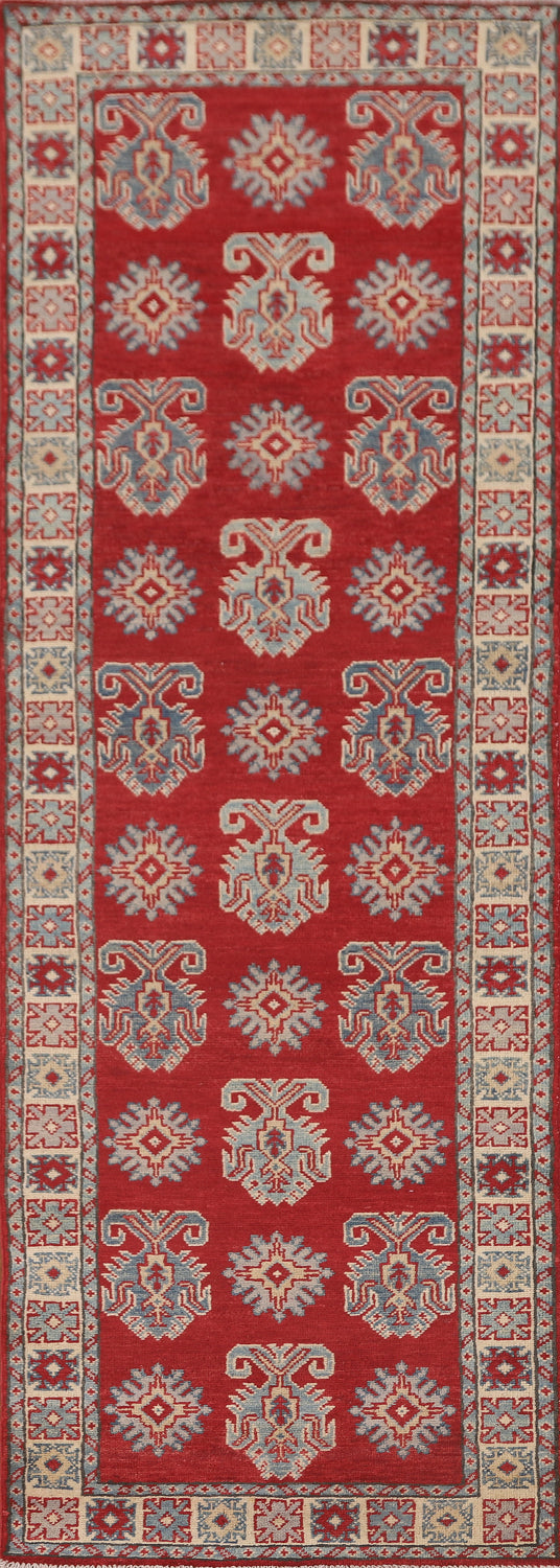 Handmade Red Kazak Oriental Runner Rug 3x8