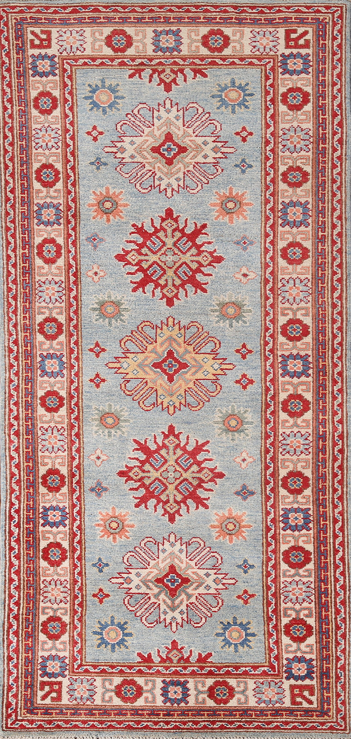 Blue Geometric Kazak Oriental Runner Rug 3x13