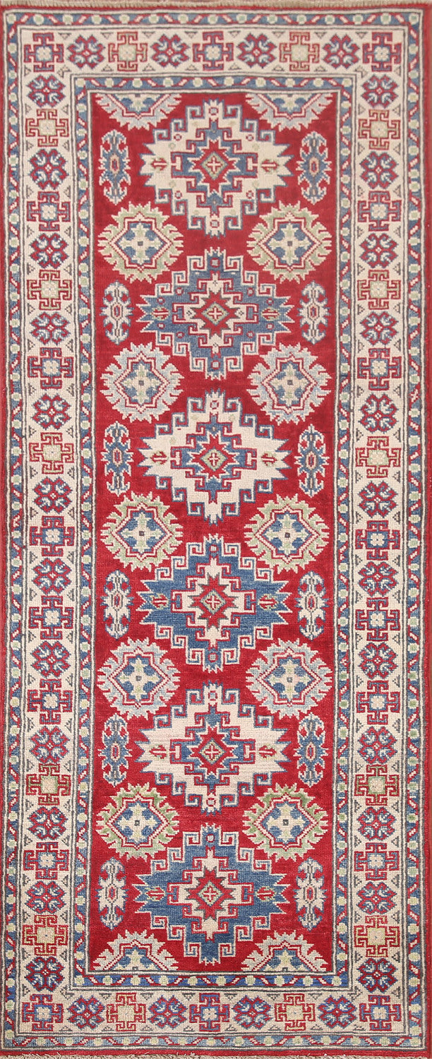 Geometric Red Kazak Oriental Runner Rug 3x10