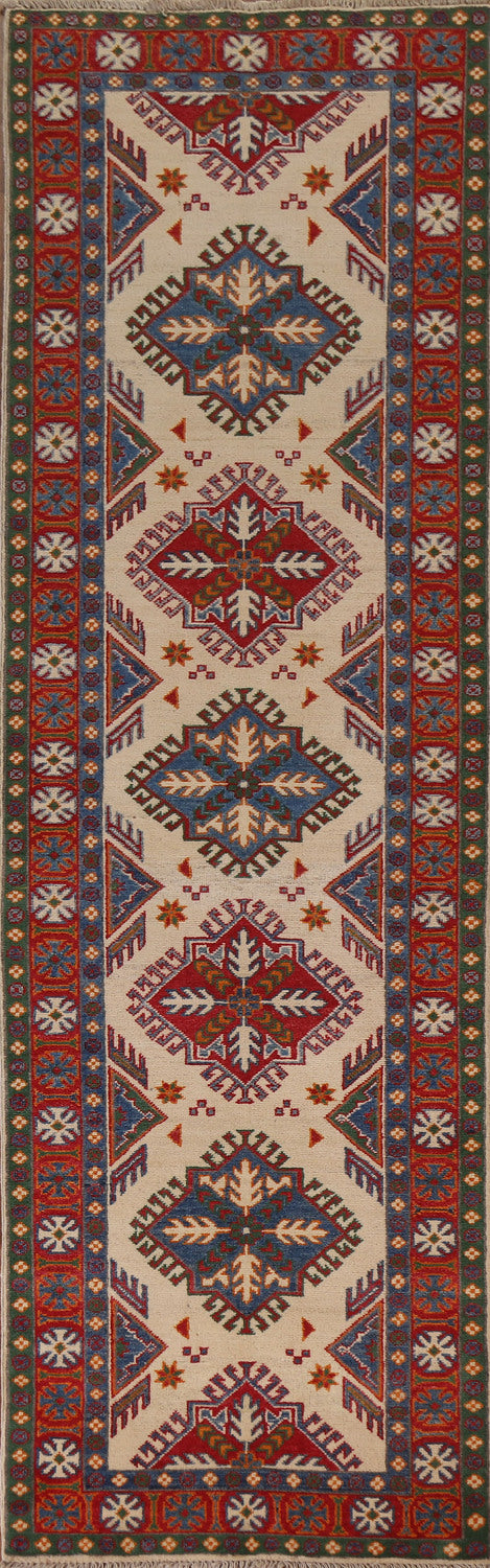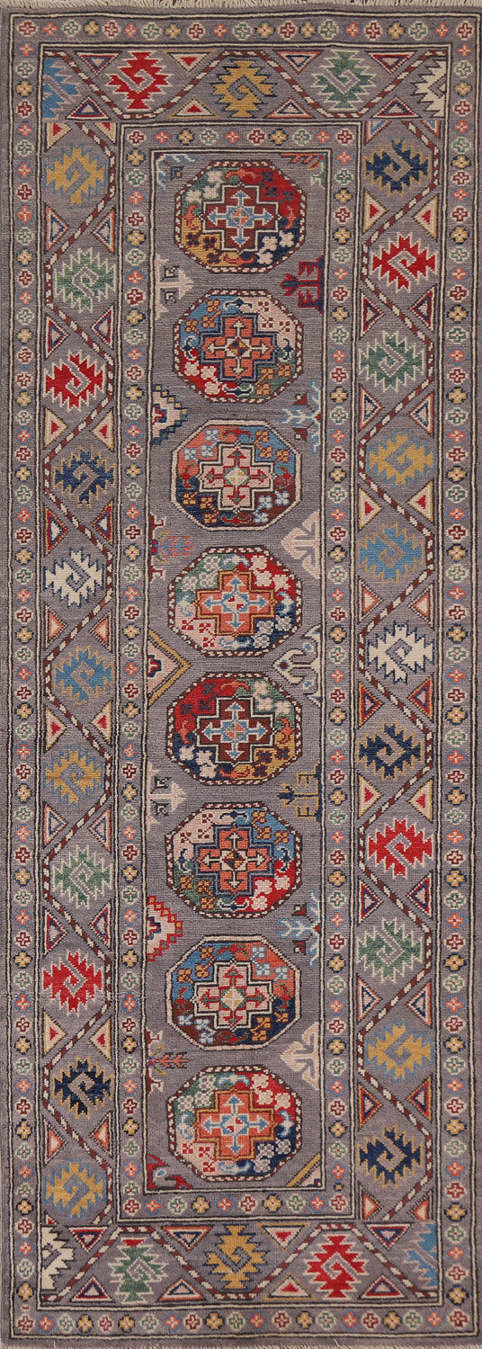 Brown Wool Kazak Oriental Runner Rug 3x9