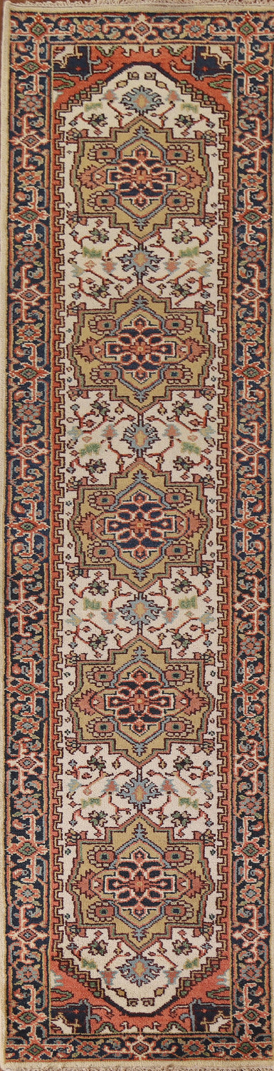 Geometric Heriz Serapi Ivory Runner Rug 3x12