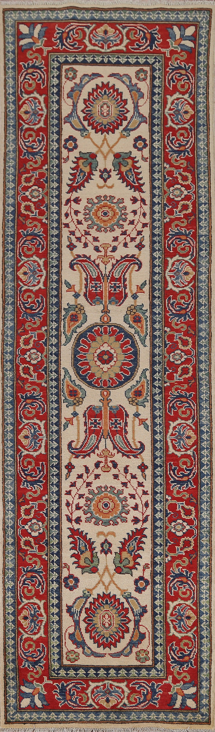 Paisley Ivory Kazak Wool Runner Rug 3x10