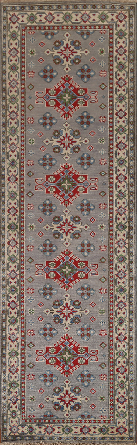 Gray Wool Kazak Oriental Runner Rug 3x10