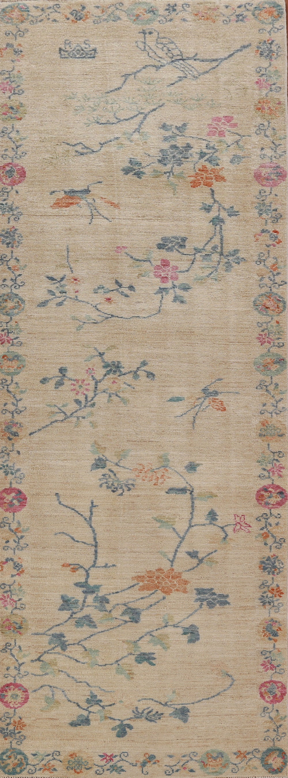 Vegetable Dye Art Deco Chinese Runner Rug 3x12
