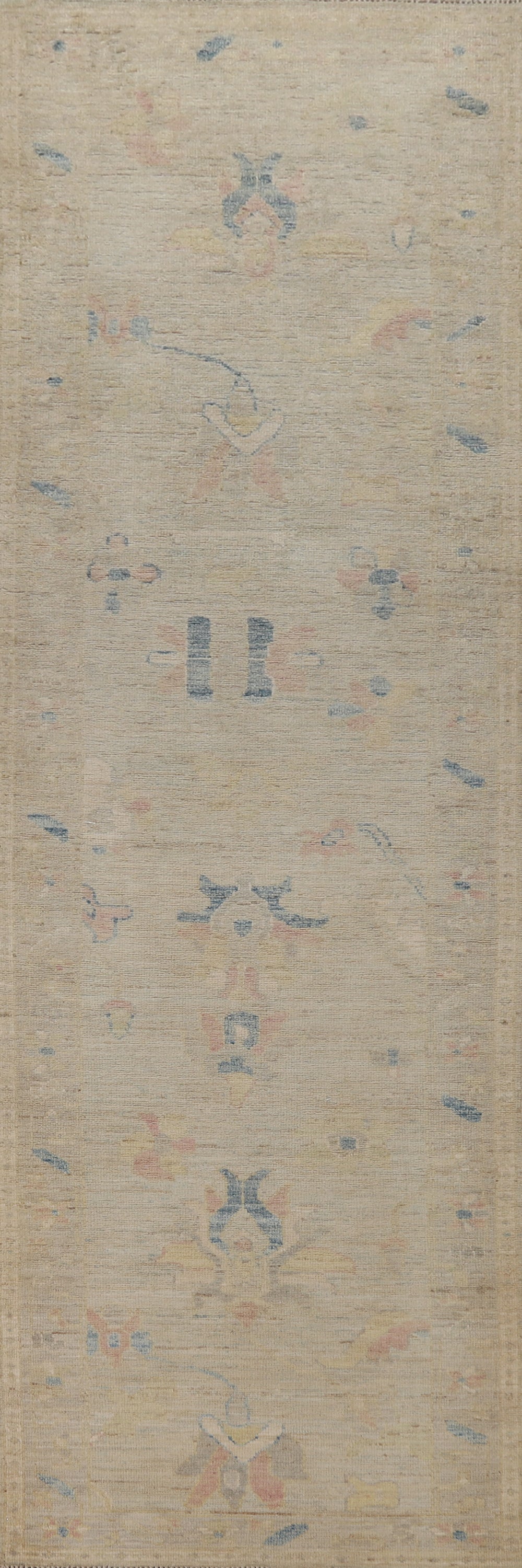 Vegetable Dye Floral Oushak Turkish Runner Rug 3x10