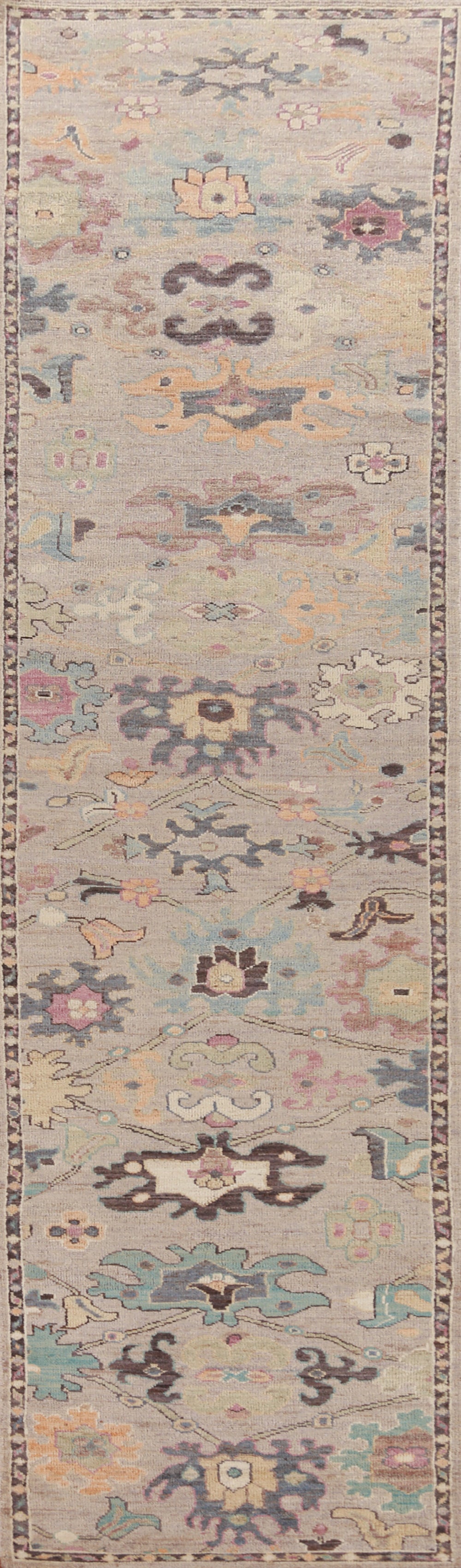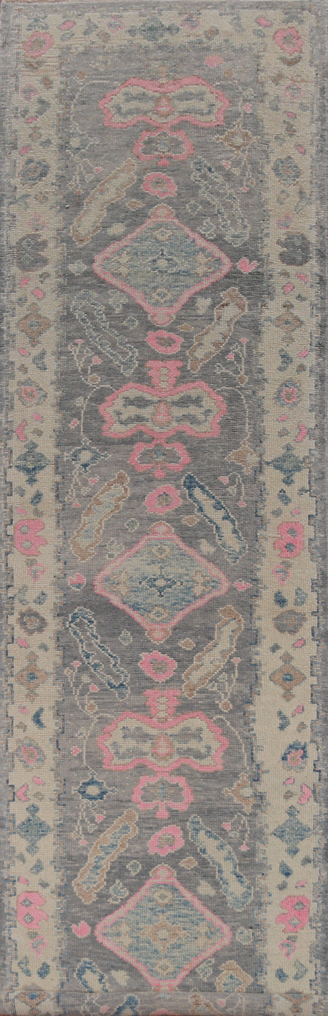 Vegetable Dye Gray Oushak Turkish Runner Rug 3x10