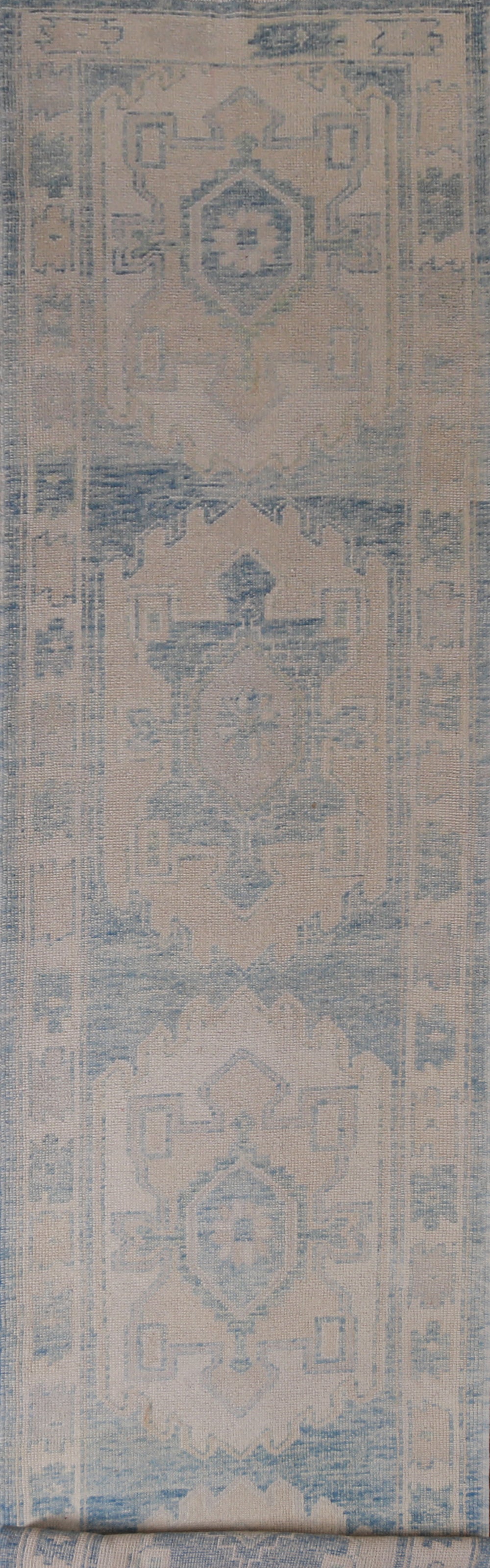 Vegetable Dye Geometric Oushak Turkish Runner Rug 3x12