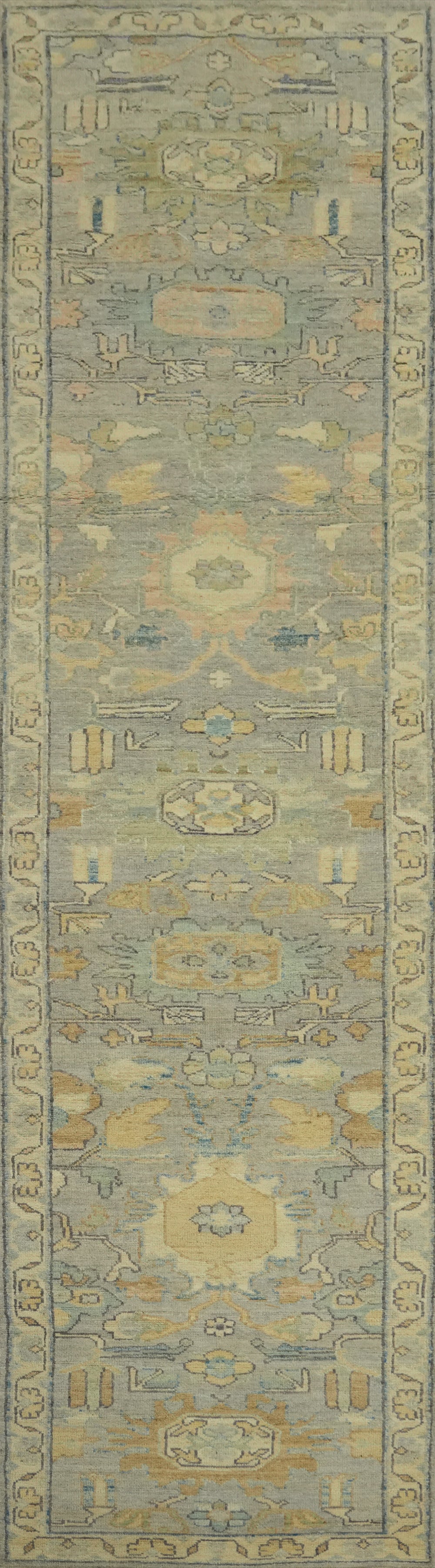 Vegetable Dye Gray Oushak Turkish Runner Rug 3x10