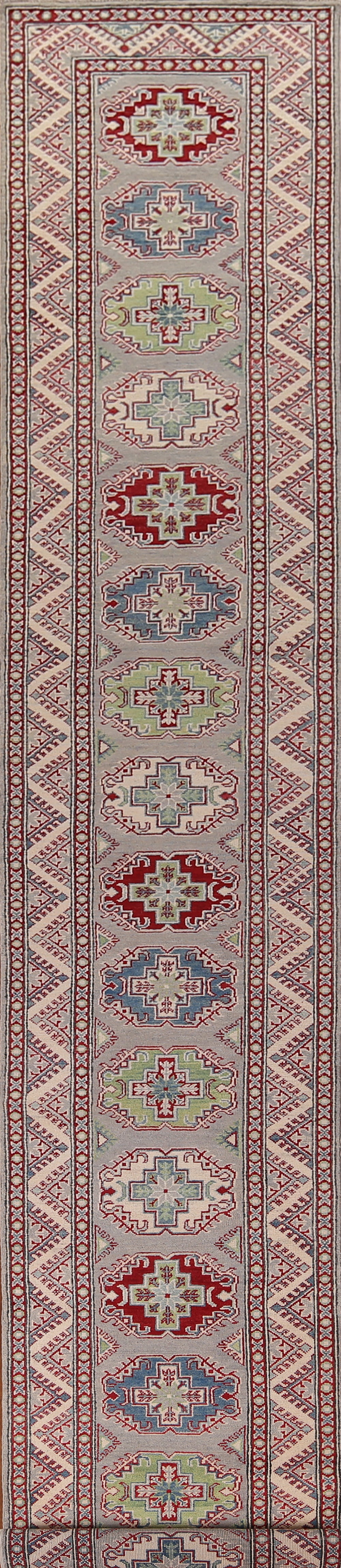 Gray Geometric Kazak Oriental Runner Rug 3x20