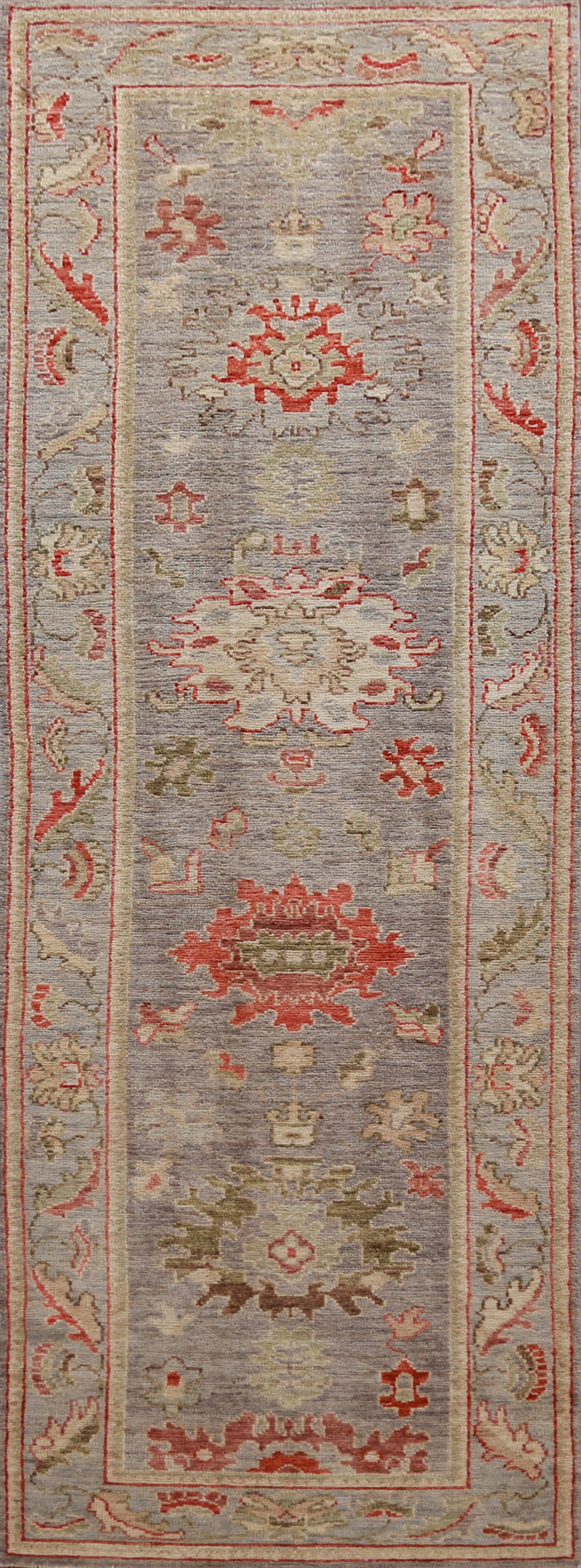 Gray Floral Oushak Vegetable Dye Runner Rug 3x10