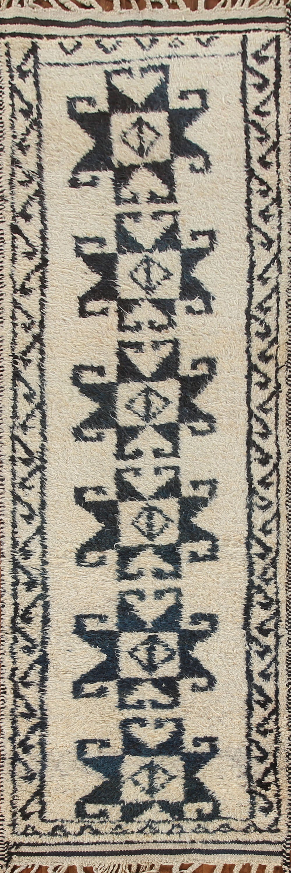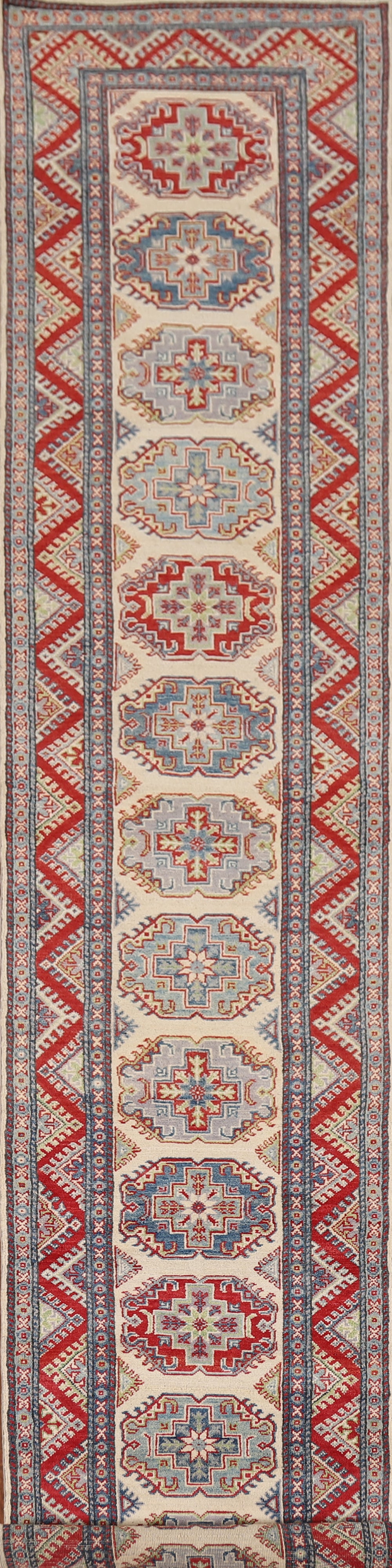 Ivory Wool Kazak Oriental Runner Rug 3x8