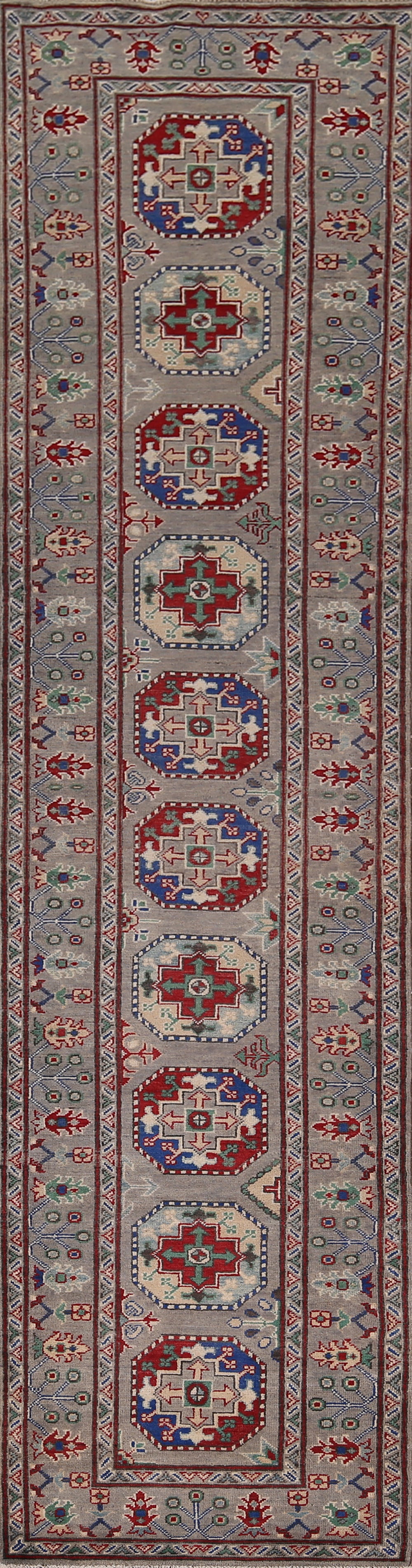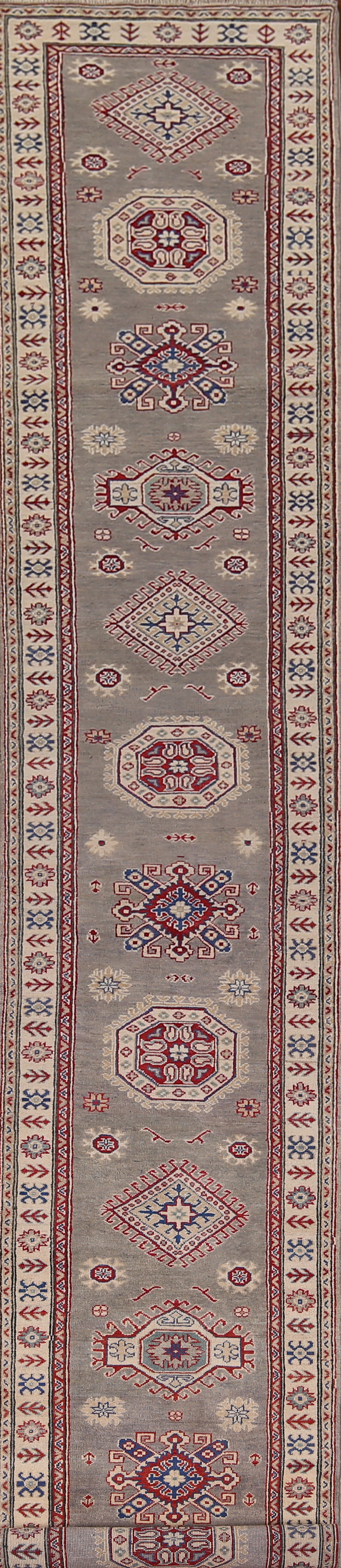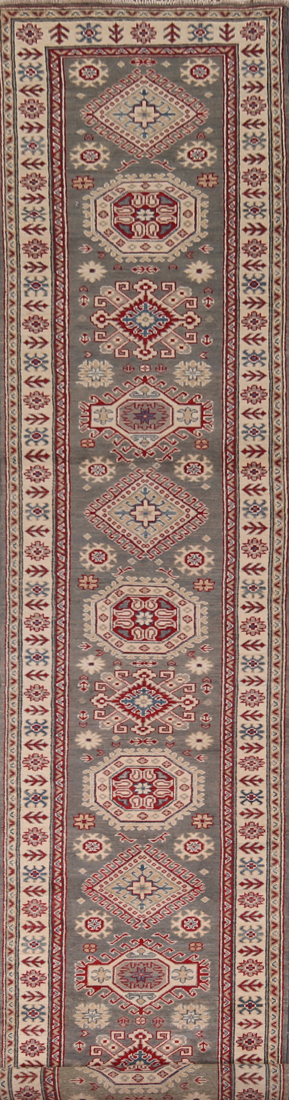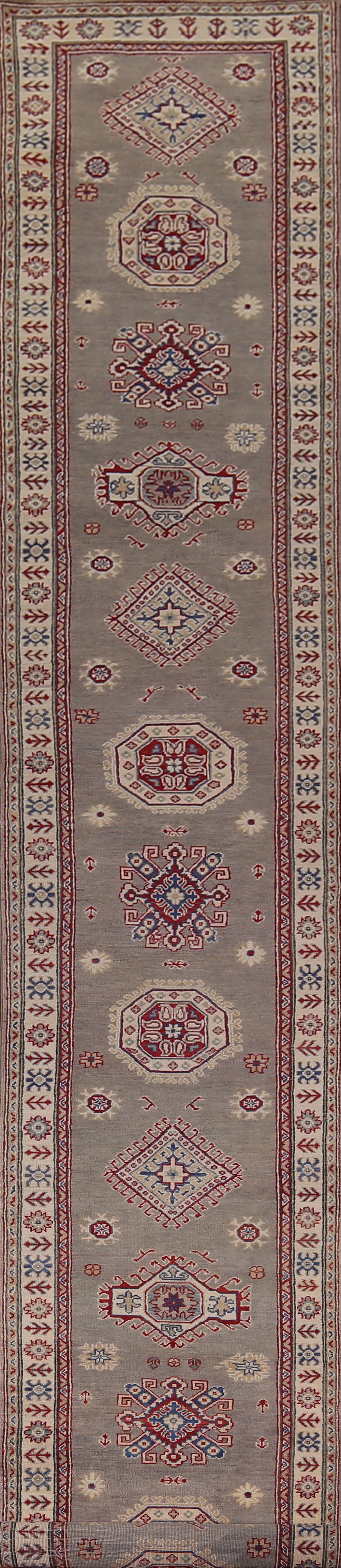 Handmade Gray Kazak Oriental Runner Rug 3x10