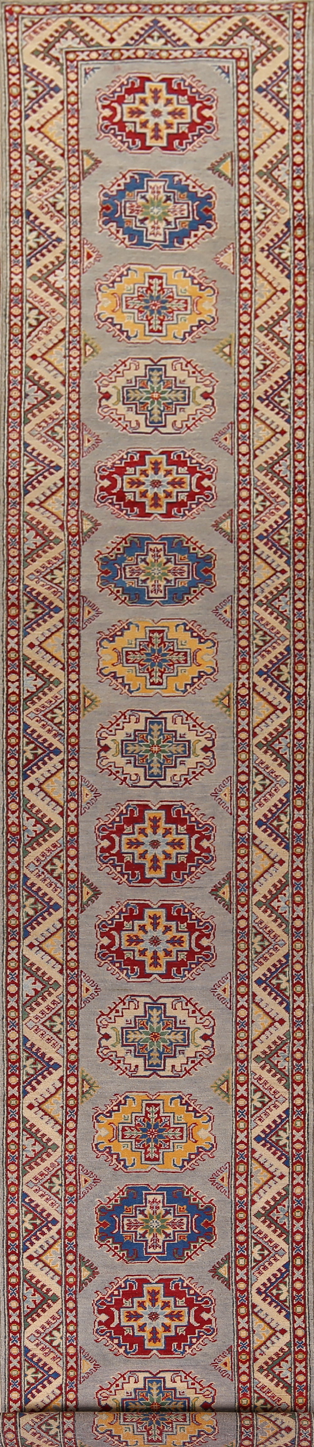 Handmade Gray Wool Kazak Oriental Runner Rug 3x20