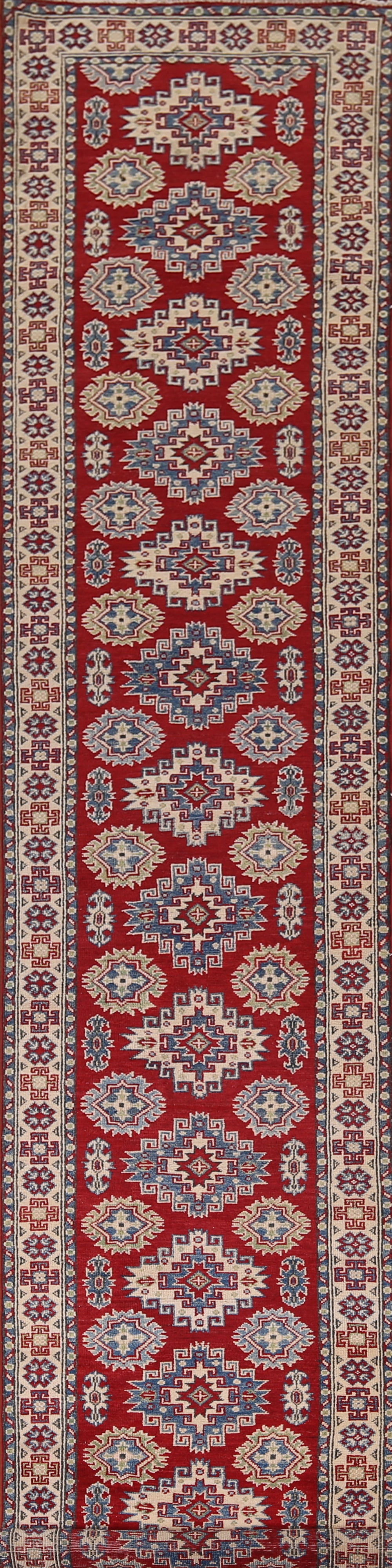 Red Geometric Kazak Pakistani Runner Rug 3x10