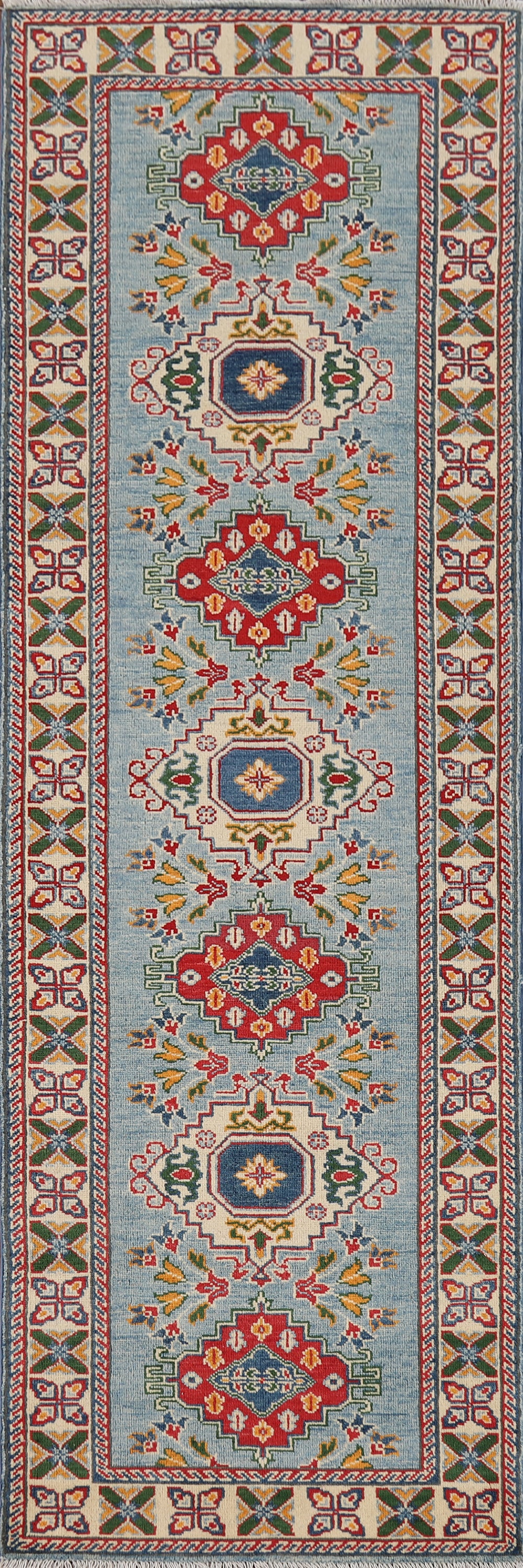 Blue Geometric Kazak Oriental Runner Rug 3x13