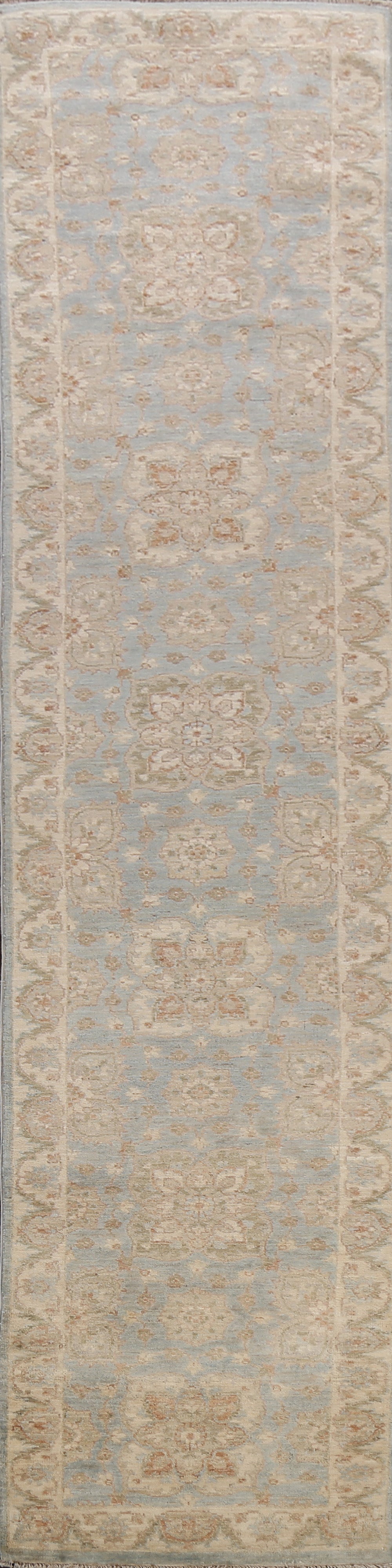 Blue Handmade Oushak Turkish Runner Rug 3x8