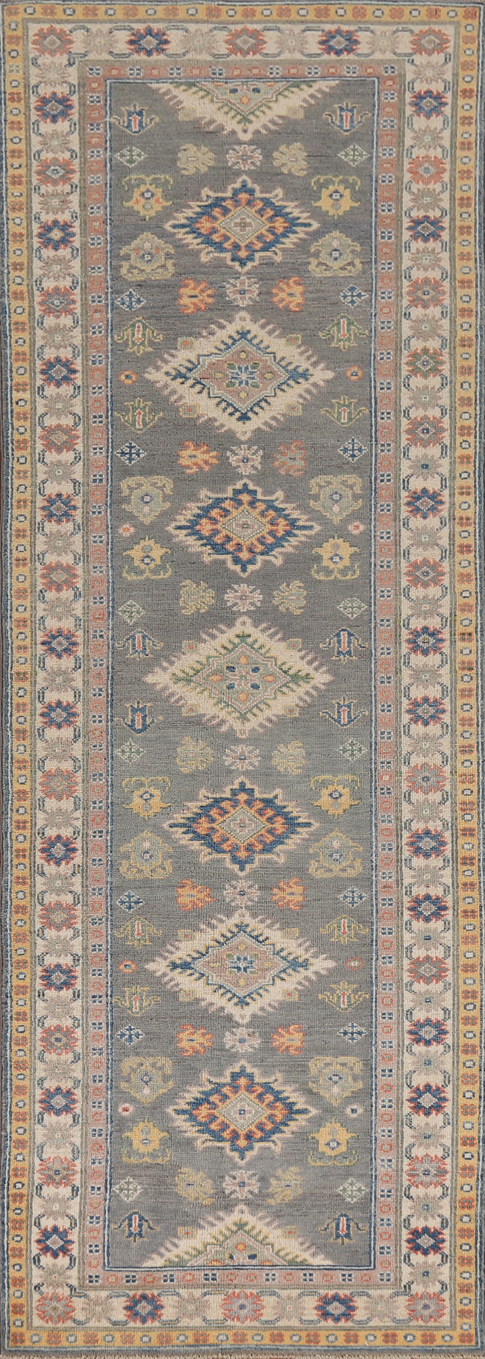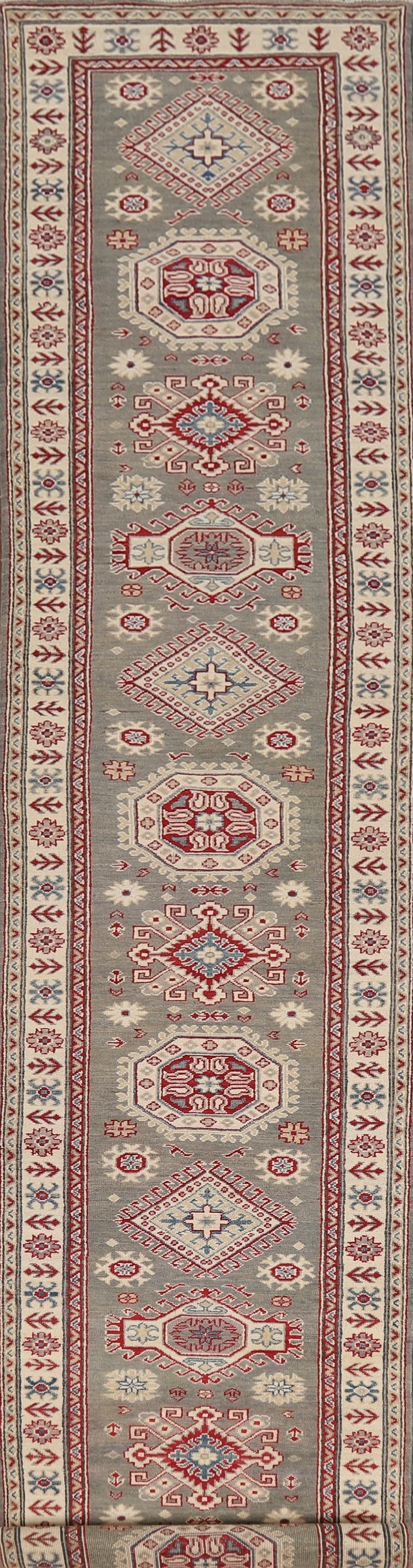 Handmade Gray Kazak Wool Runner Rug 3x10