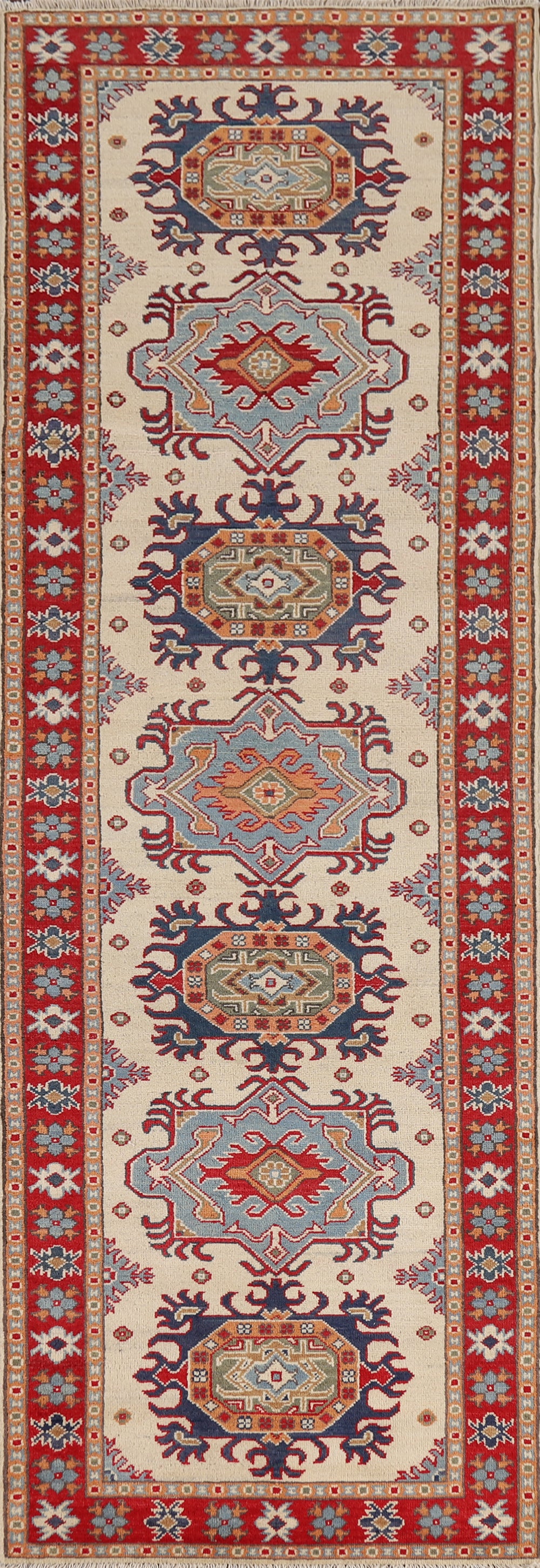 Geometric Kazak Oriental Runner Rug 3x10