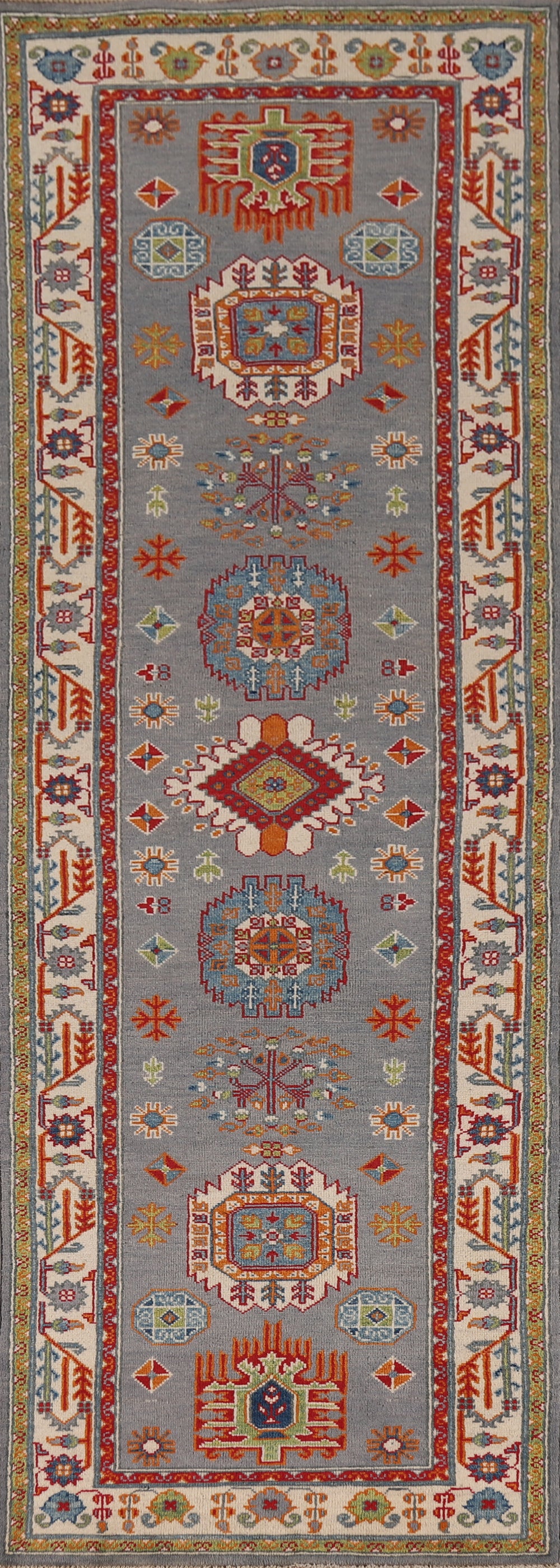 Light Blue Kazak Oriental Runner Rug 3x10