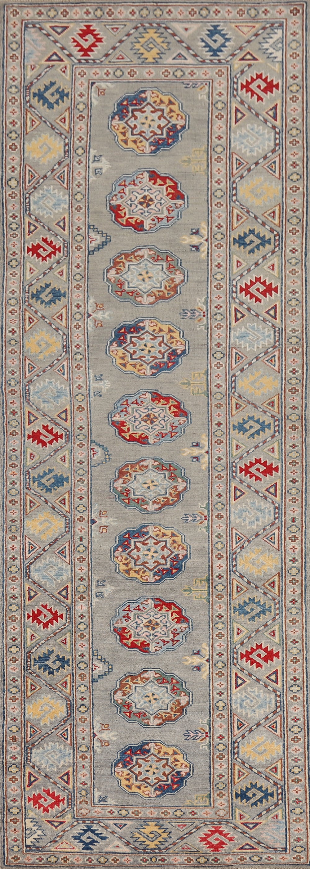 Gray Geometric Kazak Oriental Runner Rug 3x10