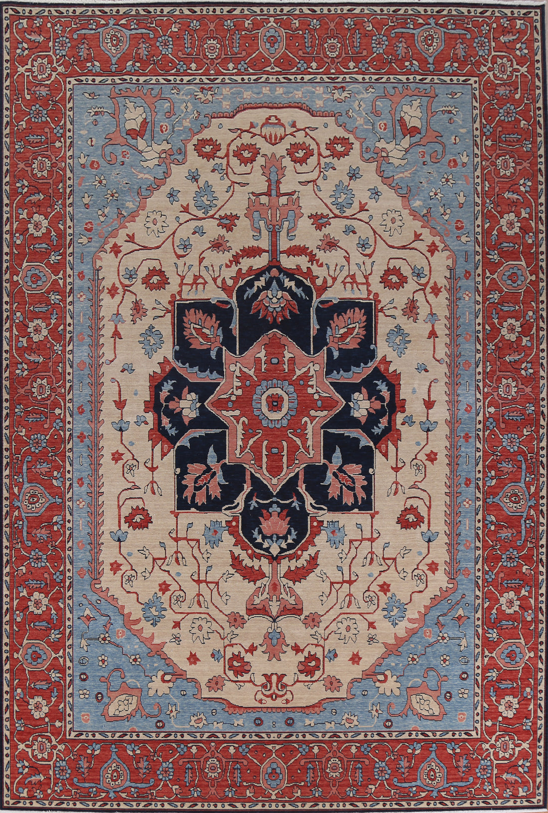 Red/ Ivory Geometric Heriz Serapi Turkish Rug 9x12