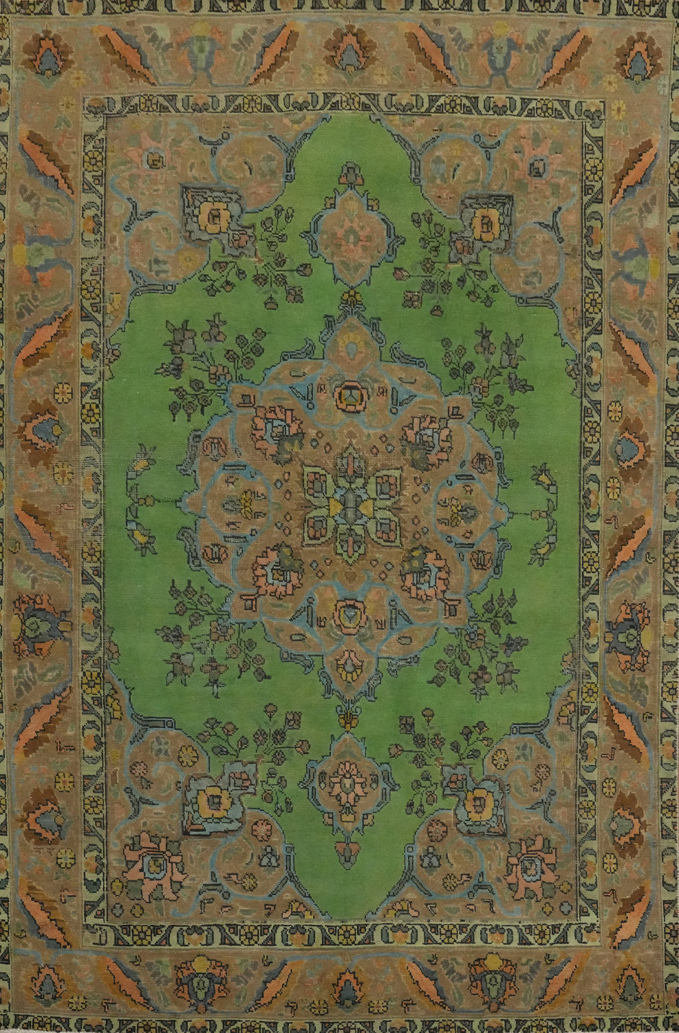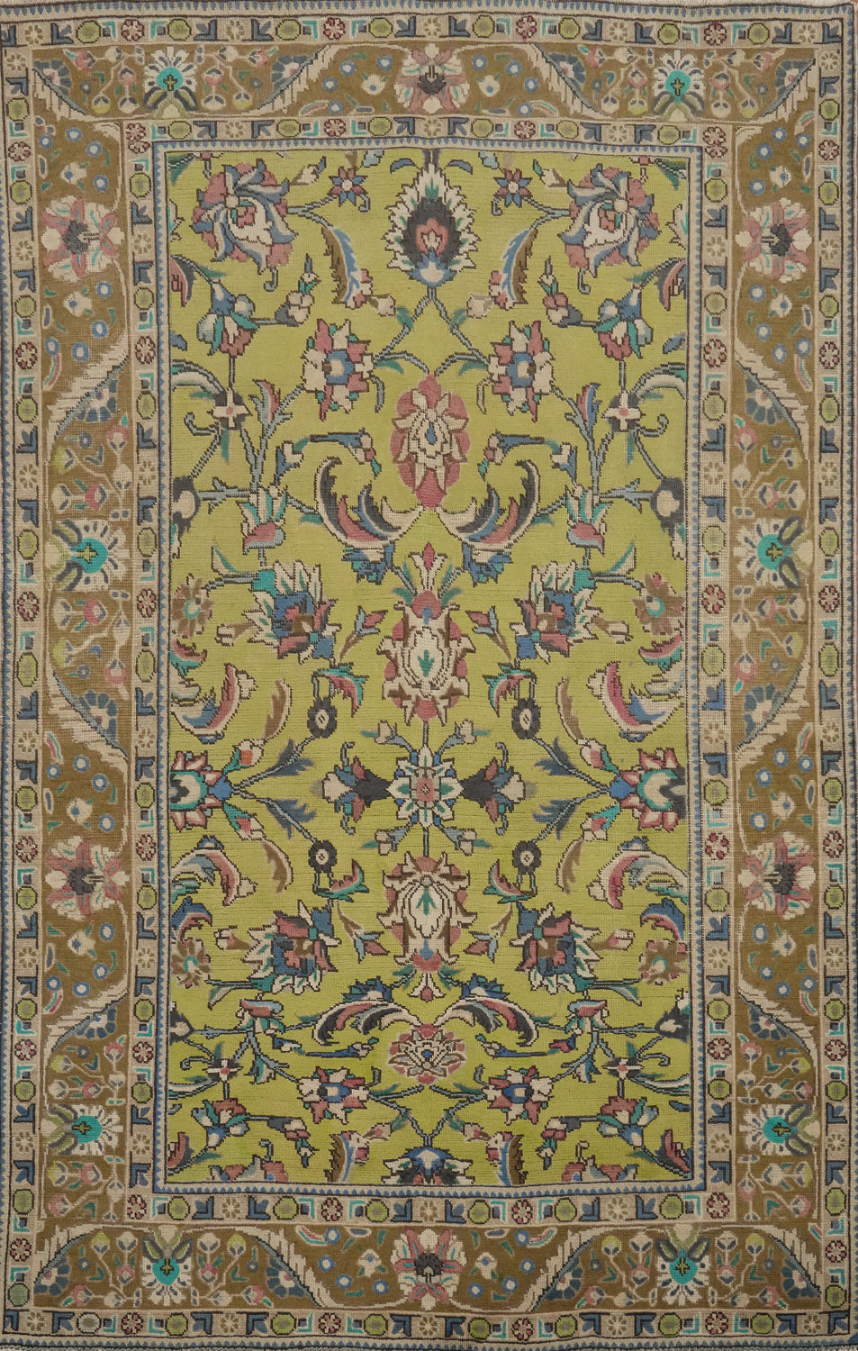 Handmade Green Floral Tabriz Persian Area Rug 6x9