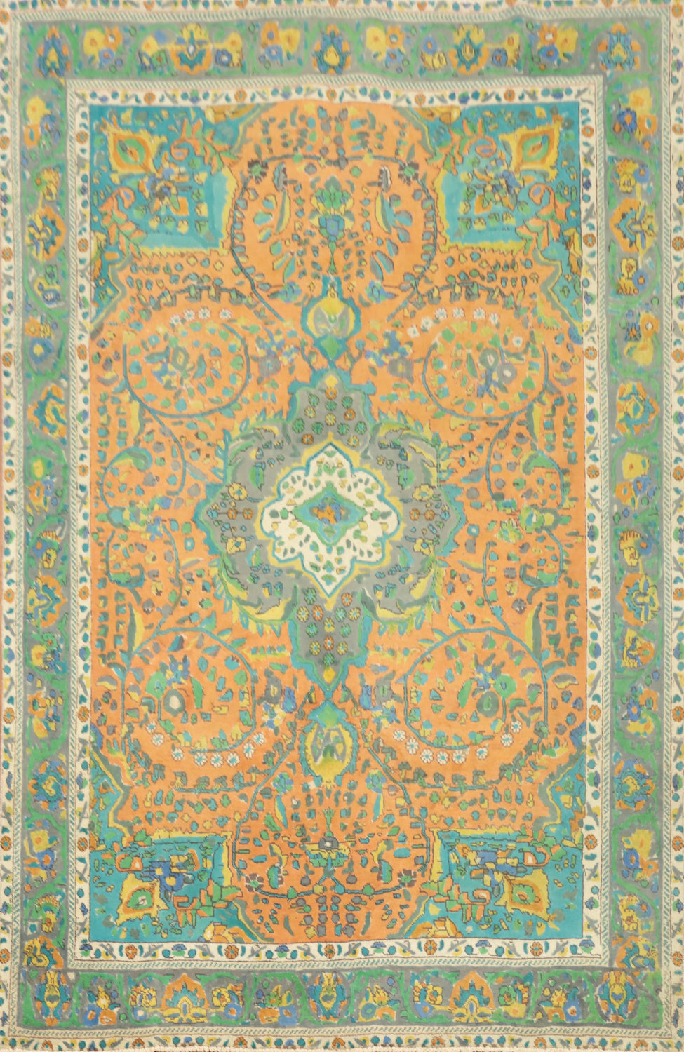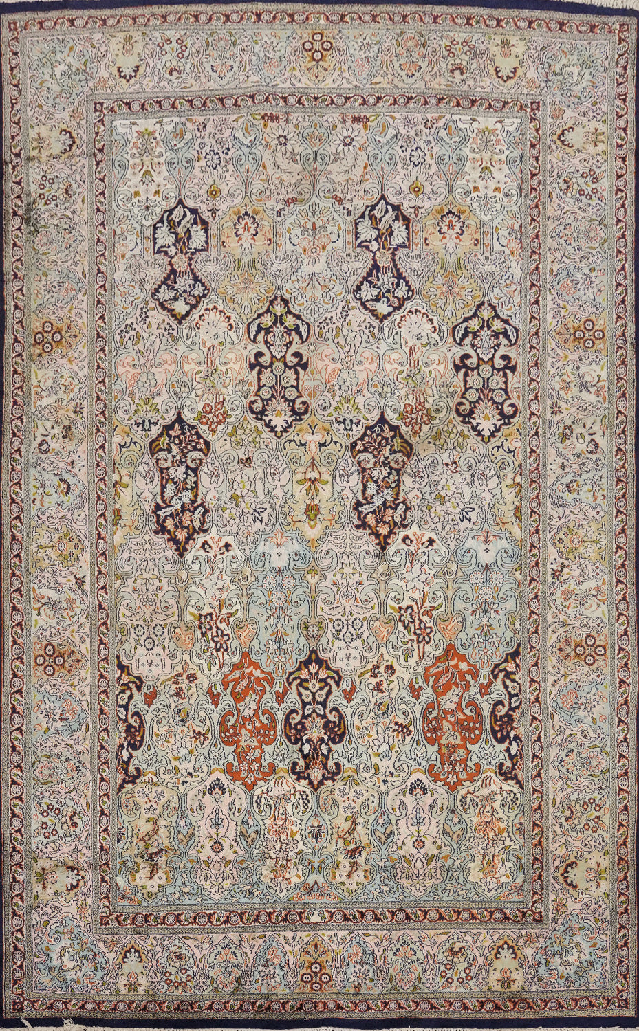 Vintage Silk Kashmir Handmade Wool Area Rug 6x10