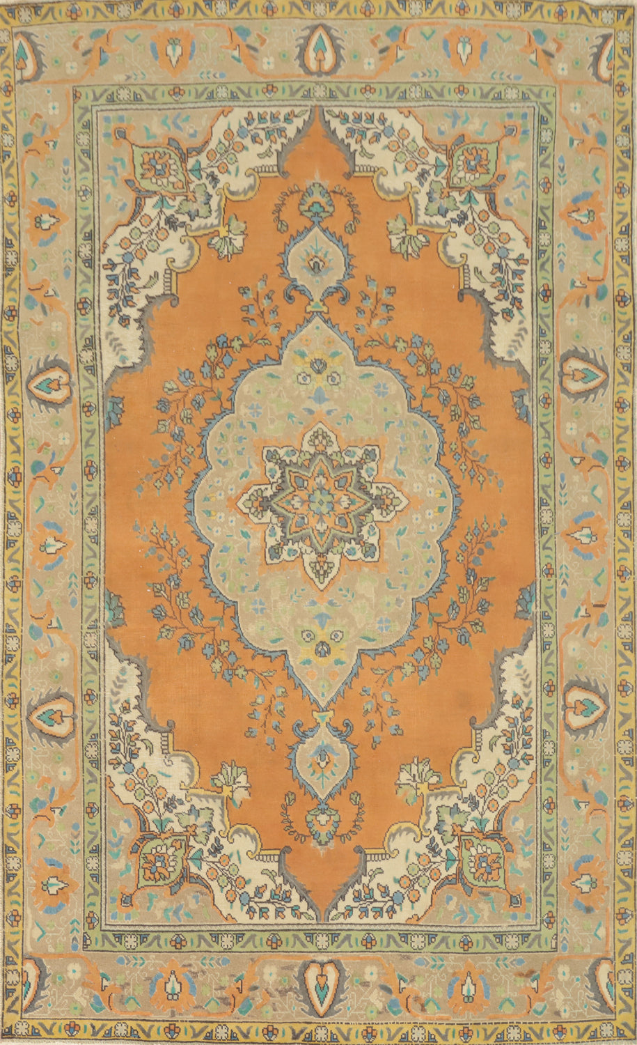 Vintage Medallion Wool Tabriz Persian Area Rug 6x10