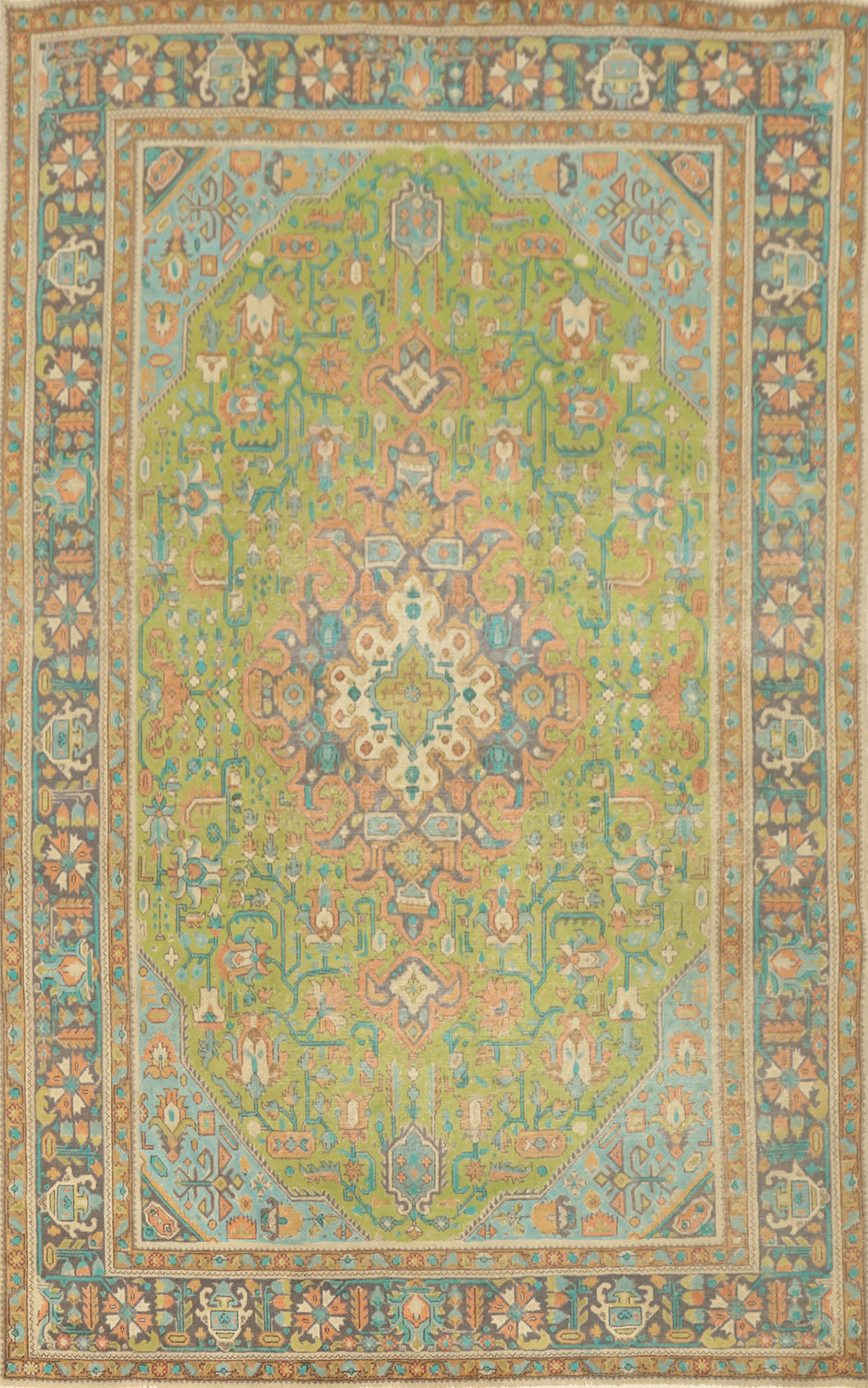 Light Green Handmade Tabriz Persian Area Rug 7x9