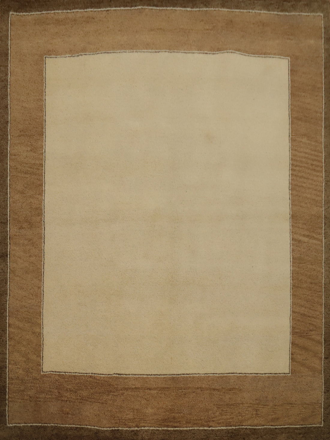 Elegant Two-Tone Beige and Brown Modern Gabbeh Area Rug 7x7