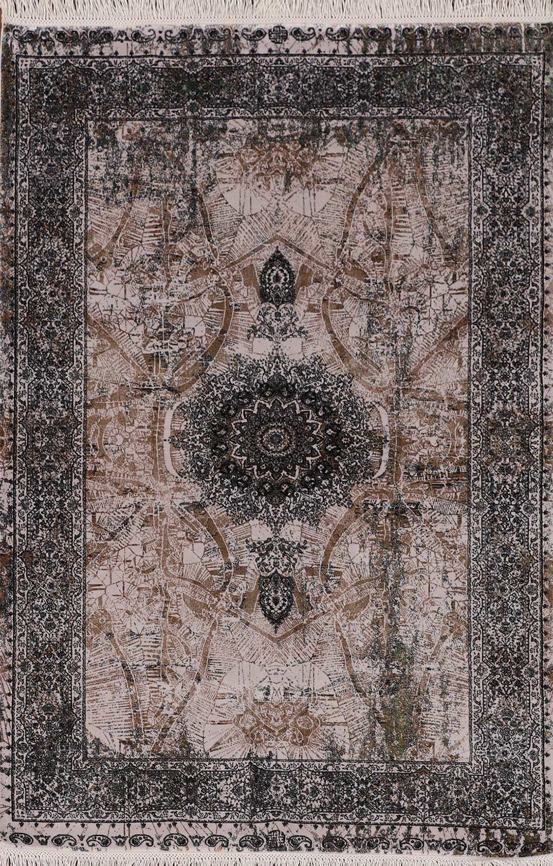 Gray & Black Traditional Floral Qum Turkish Rugs