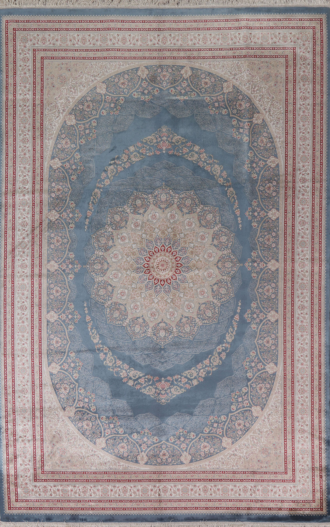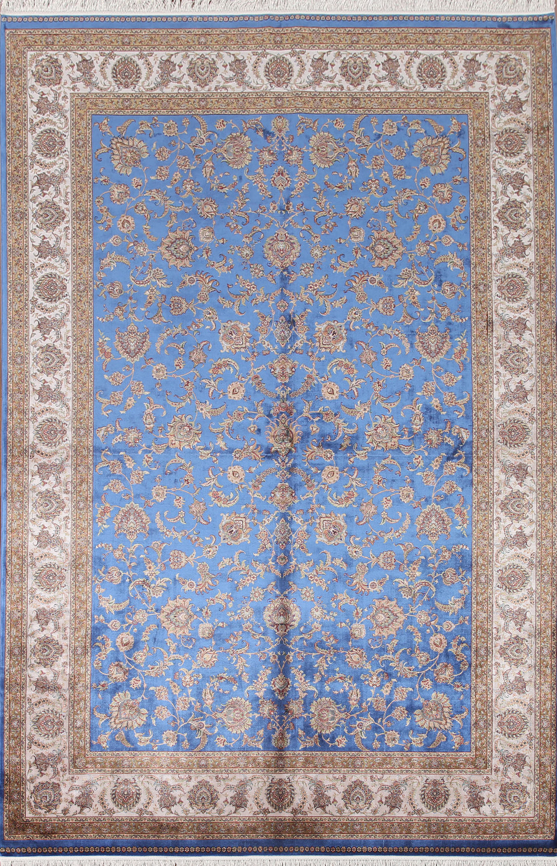 Victorian Style Blue Qum Turkish Area Rug 7x10